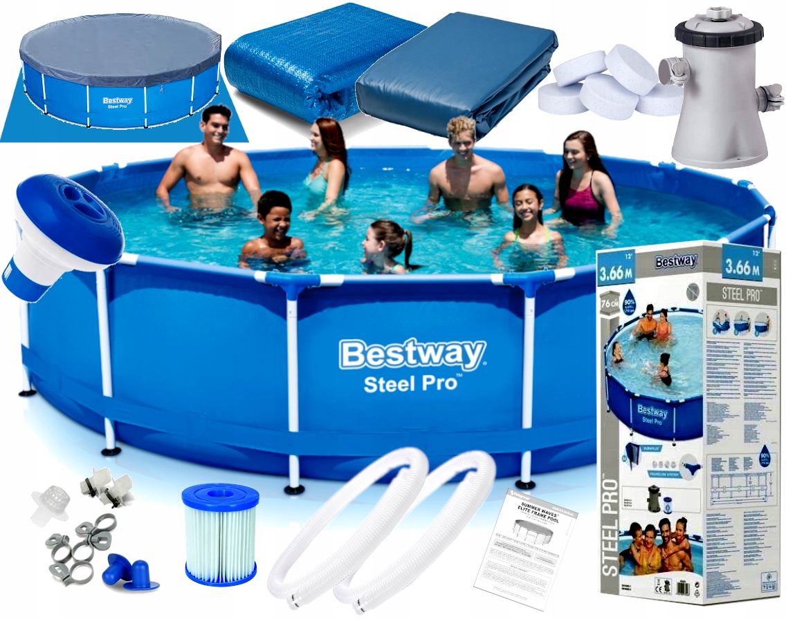 КАРКАСНЫЙ БАССЕЙН BESTWAY 366x76СМ ПРОЧНЫЙ С НАСОСОМ + АКСЕССУАРЫ