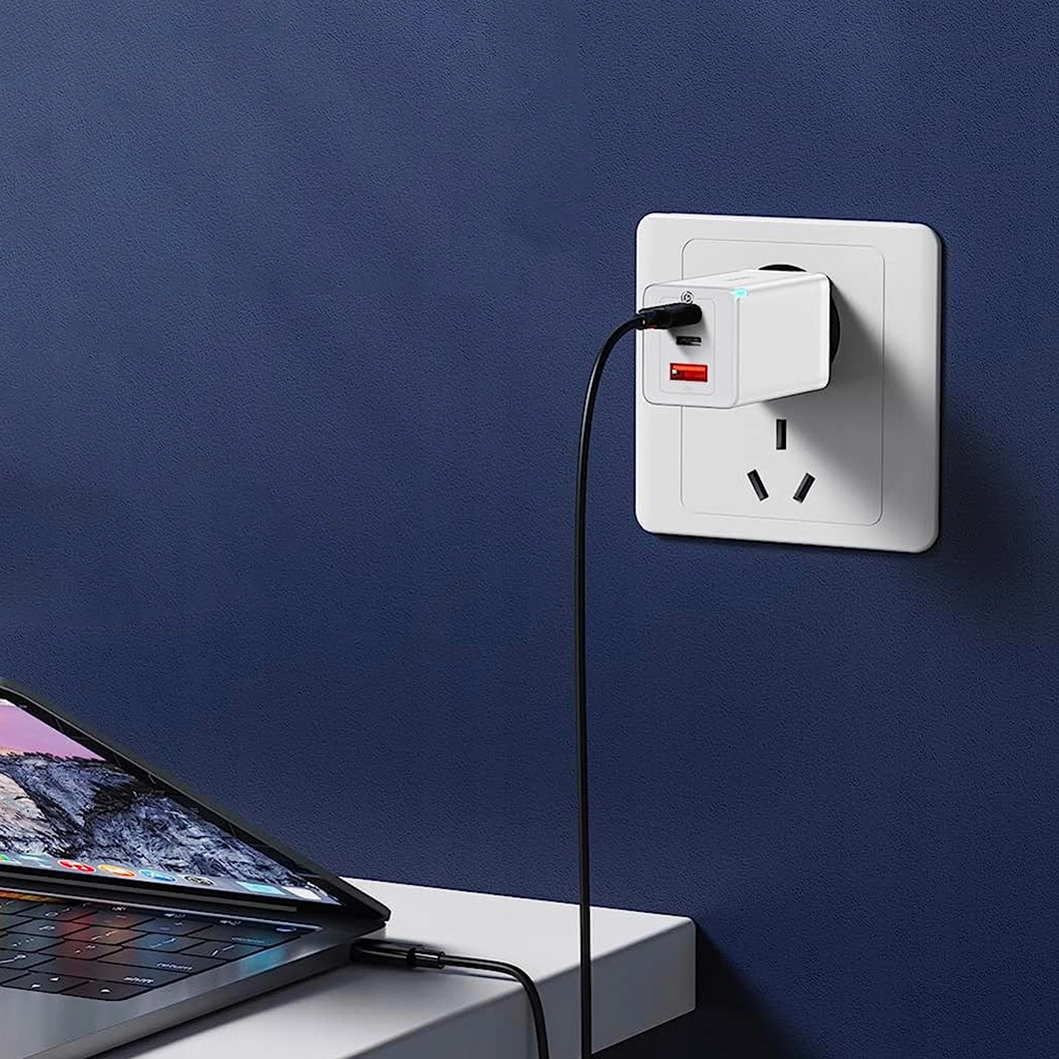 - Эффективная зарядка благодаря технологии GaN. - Благодаря технологии GaN можно заряжать устройства мощностью до 65 Вт. Вместо кремния в аксессуаре используется нитрид галлия. GaN — полупроводниковый материал, который не только повышает эффективность процесса зарядки, но и требует гораздо меньше энергии для полной зарядки устройства.