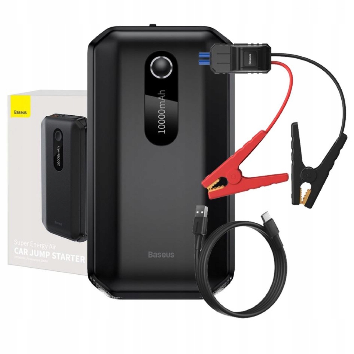 Baseus Super Energy Air Car Jump - мощная мощность, заключенная в совершенно продуманное, дизайнерское жилье. Не -стандартные формы и черный цвет дают элегантность, а небольшой экран показывает уровень заряда аккумулятора, так что вам не нужно беспокоиться, когда вам следует заряжать