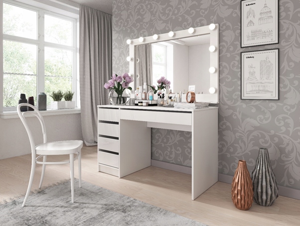 Функциональный письменный стол BASIC 9 с пятью ящиками. Большой и функциональный письменный стол, идеально подходящий в качестве учебного места для студента, туалетного столика или офисного места.Универсальный предмет мебели, сторону ящиков можно определить при сборке. Мебель из качественного ламината, корпус покрыт кромкой АБС. Мебель упакована в пакеты, для самостоятельной сборки. В комплект входит понятная инструкция по сборке. 100% польский продукт.