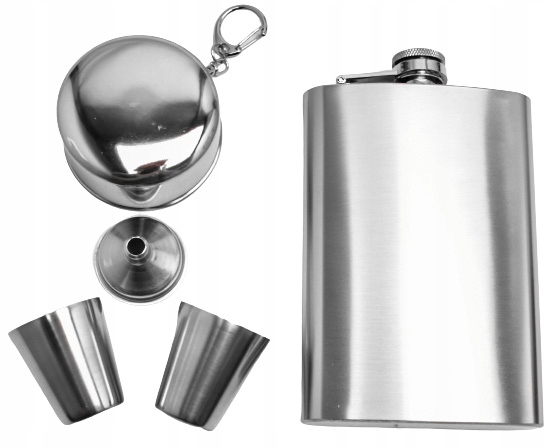 Элегантный подарочный набор: фляга, воронка, два стакана и складной стакан на брелоке
