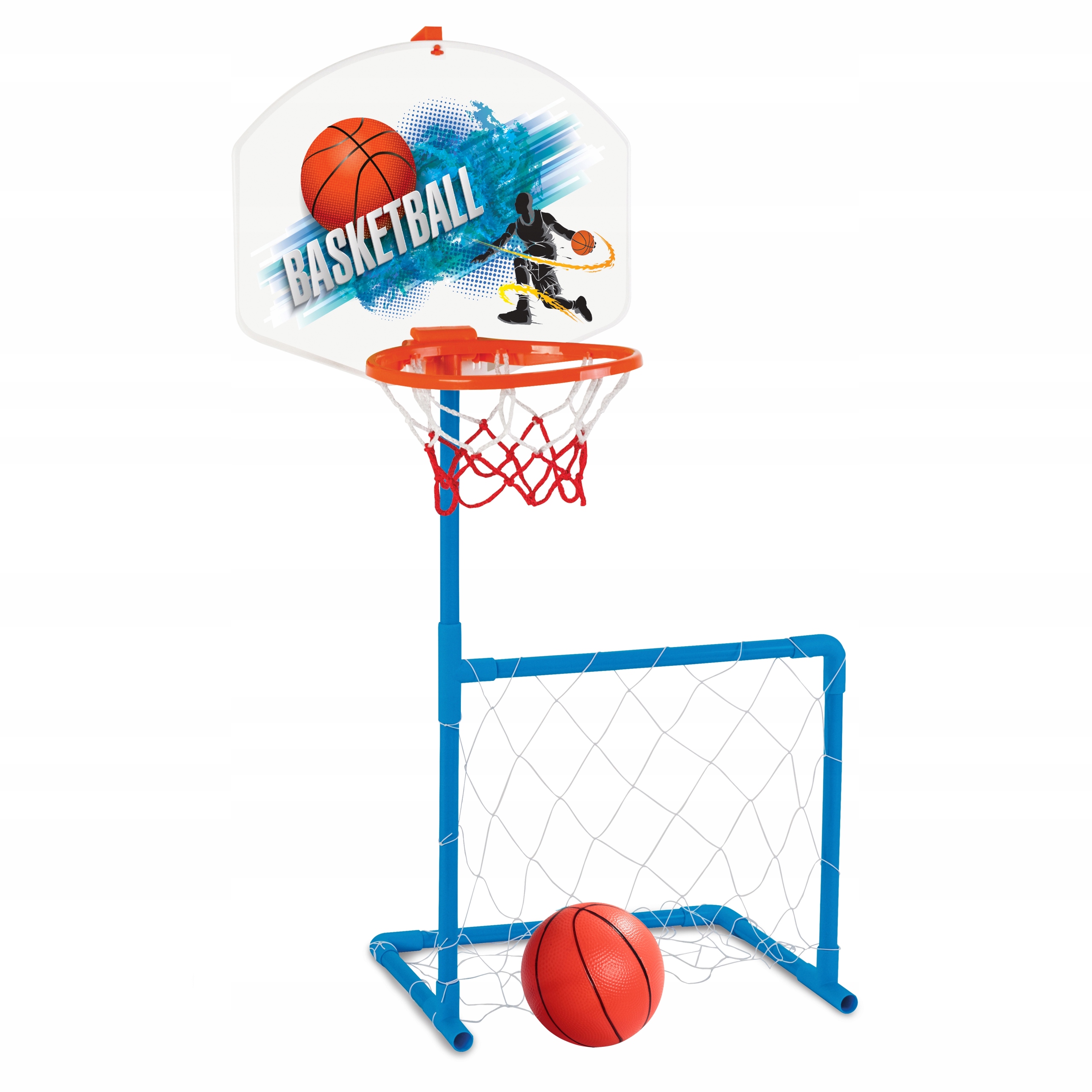 Спортивный набор 2IN1 Баскетбол и ворота woopie - отличная спортивная комбинация для самых маленьких детей! Ребенок может выбрать то, что он хочет взять в данный момент. Ребенок может играть в один и тот же баскетбол или с друзьями в футбол - ему никогда не будет скучно! Набор, безусловно, поощряет вашего ребенка заниматься спортом. Деятельность предоставит вашему ребенку развитие SO -SALLED больших моторных навыков , что идеально подходит для правильного развития ребенка. Большой плюс заключается в том, что продукт можно использовать как дома, так и снаружи - ваш ребенок сможет играть везде, независимо от погоды. Баскетбол- это высота 121 см - идеально подходит для самых молодых игроков!