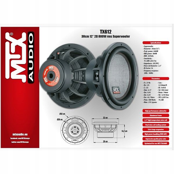 - 1 × сабвуфер MTX TX612 (12 дюймов)