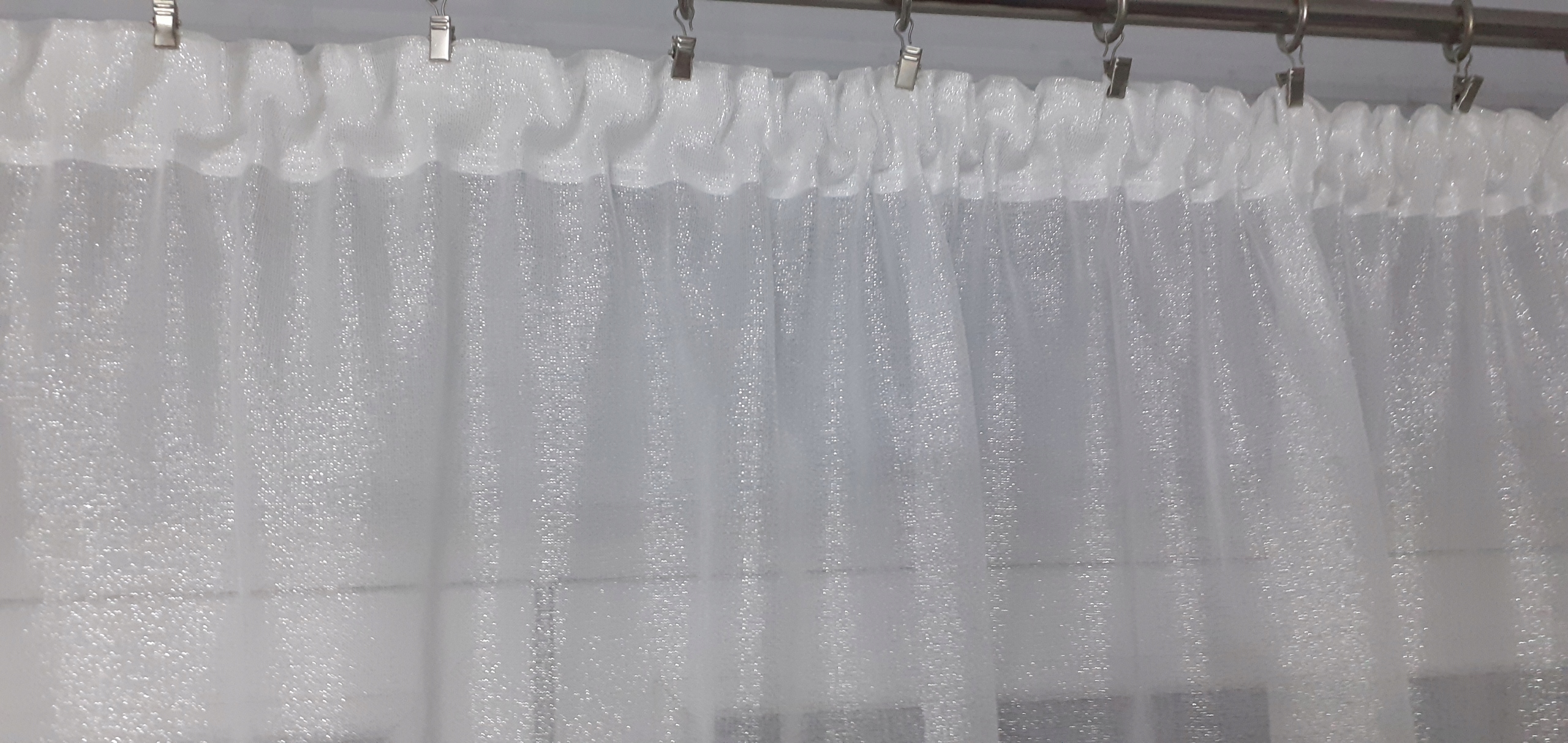 Ткань красивая и переливается под воздействием света, летом красиво переливается на окне, когда светит солнце, зимой, когда включаем свет, внутренняя часть окна красиво переливается ;)