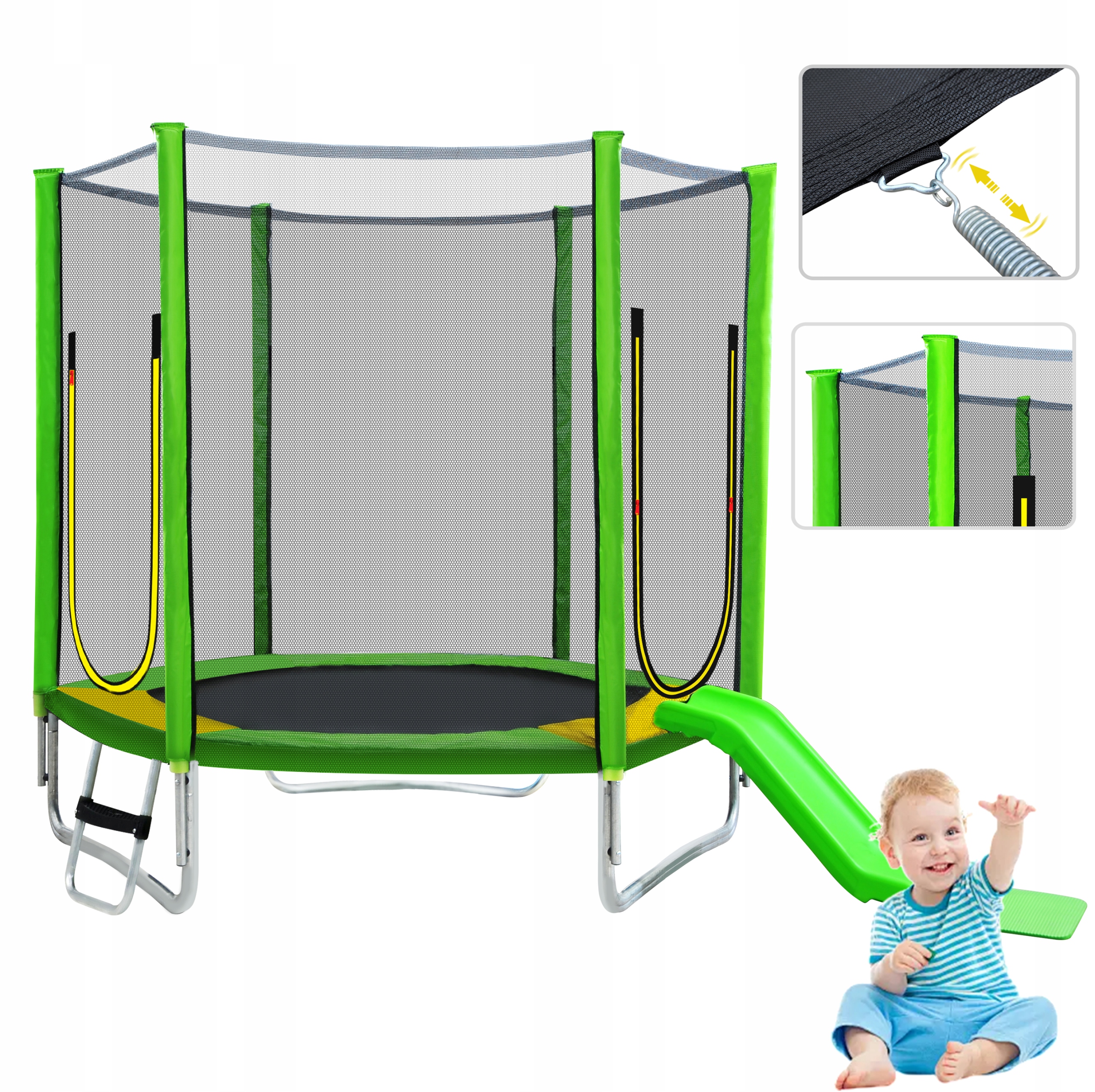 🌈 [дизайн 3-в-1] Этот высококачественный 7-футовый батут удовлетворит все потребности вашего ребенка в непревзойденном веселье — поднимайтесь по лестнице, прыгайте на батуте и скатывайтесь вниз. Это эффективный способ предотвратить зависимость вашего ребенка от электроники и нарастить мышечную силу.