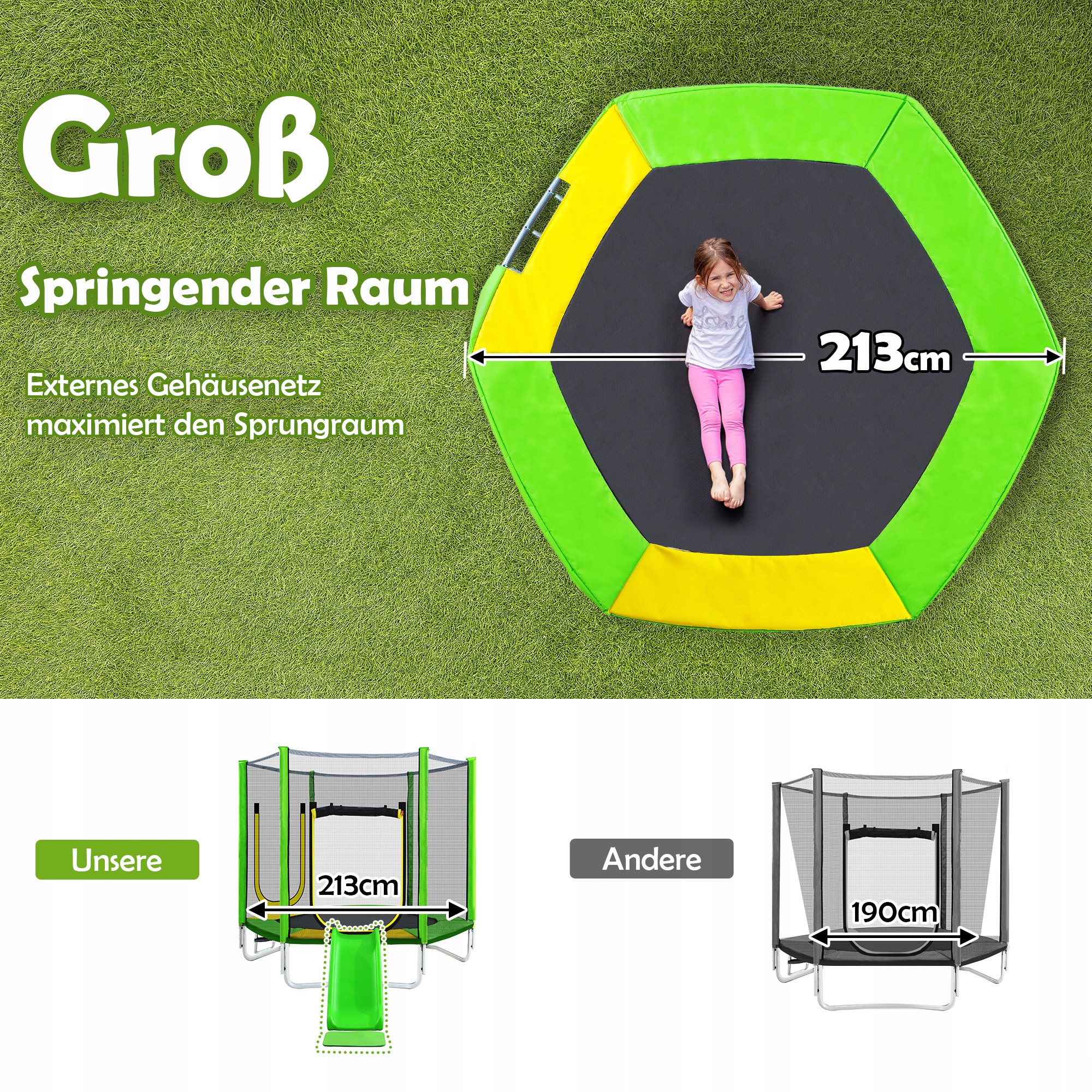 САДОВЫЙ ДЕТСКИЙ батут С СЕТКОЙ И ГОРКОЙ Ø 213 СМ