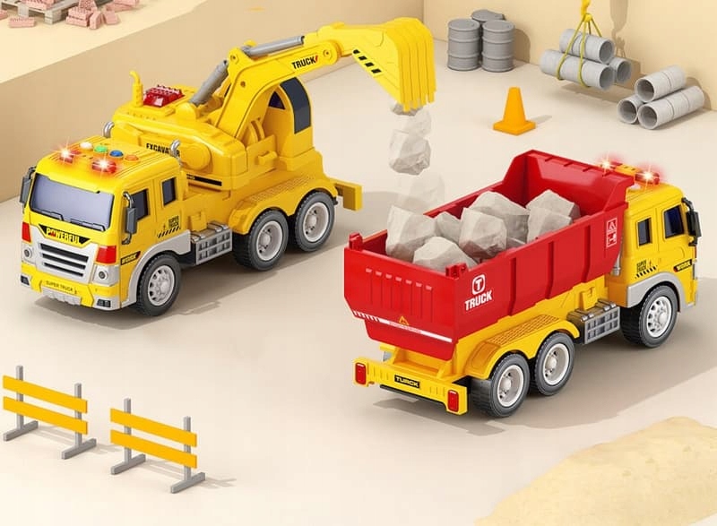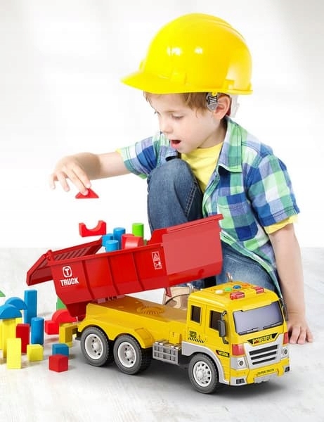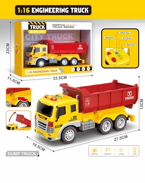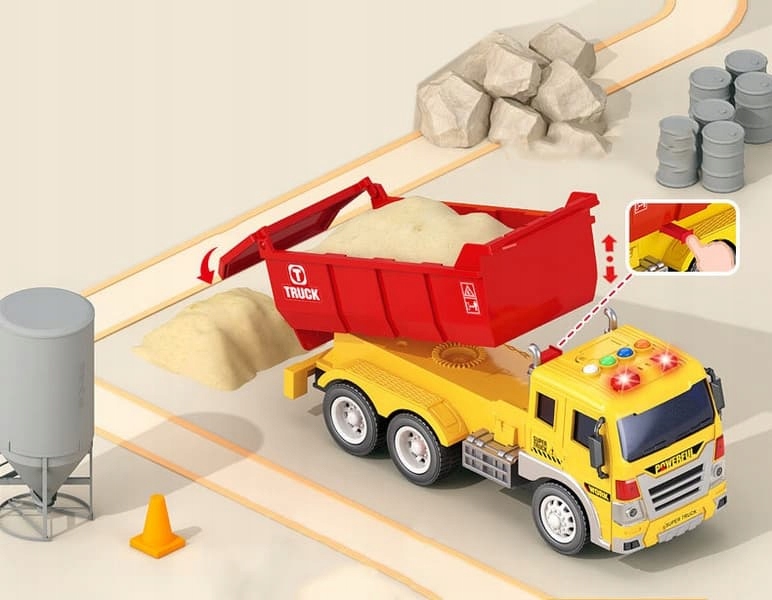 Car Tipper не может отсутствовать в какой -либо строительстве. Вот почему торопие для строительства! После нажатия кнопок, он издает звуки и сияет.