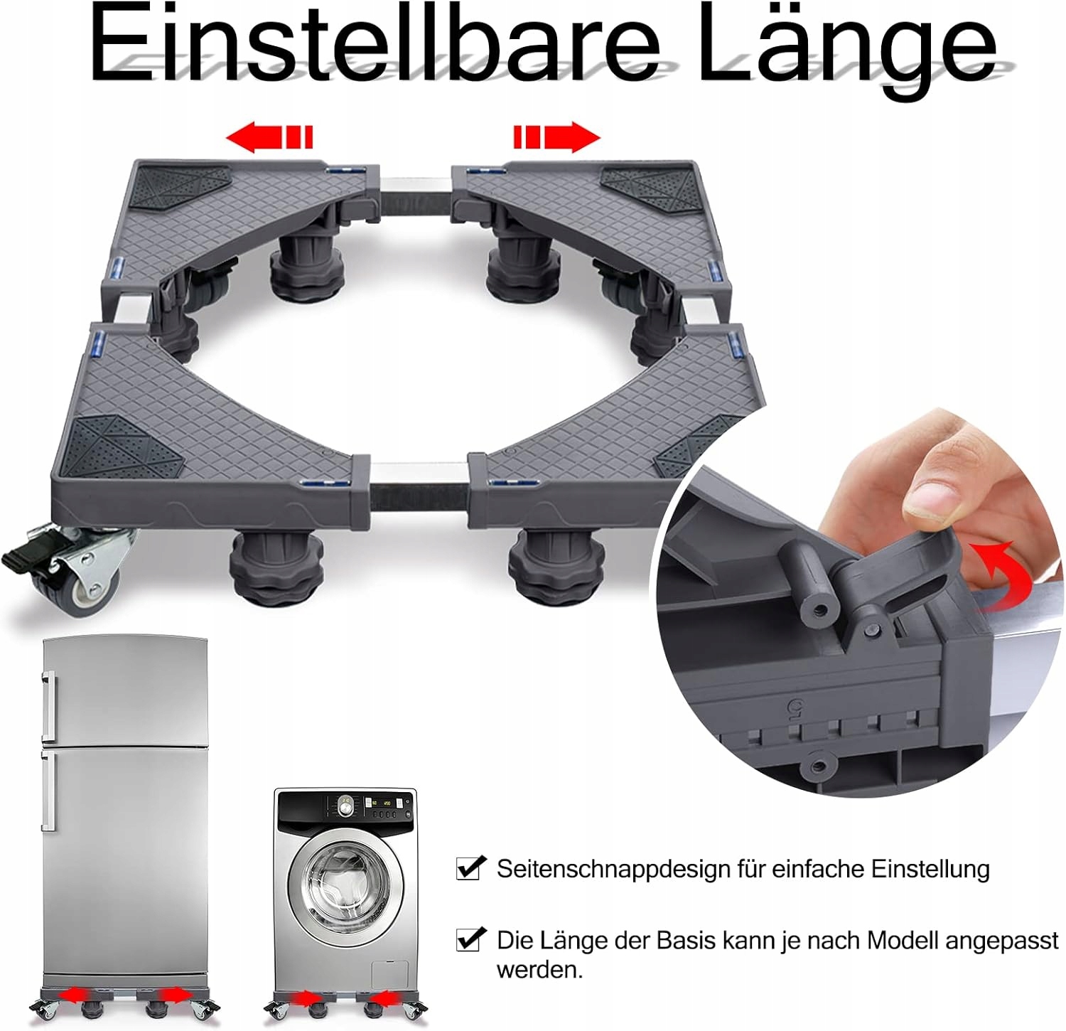 8 ног с возможностью регулировки индивидуальной высоты (10-13 см). Основа может быть гибкой регулировкой для обеспечения хорошей стабильности. Подходит для всех бытовых приборов разных высот.
