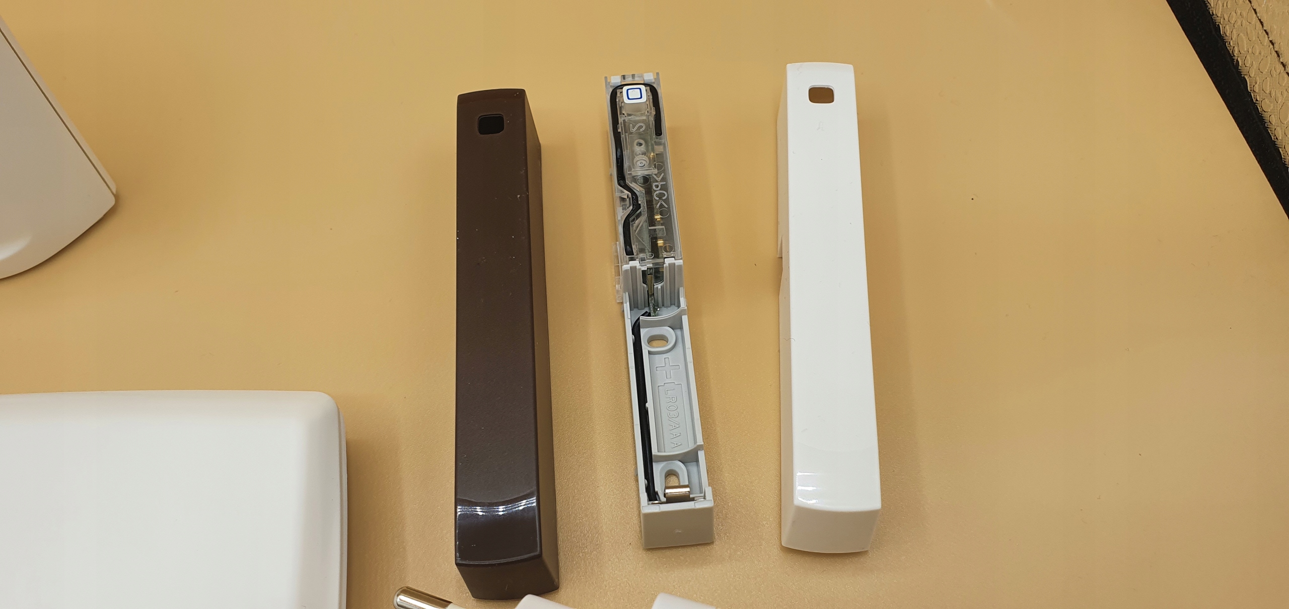 - Датчик открытия дверей и окон – оптический (белый и коричневый).