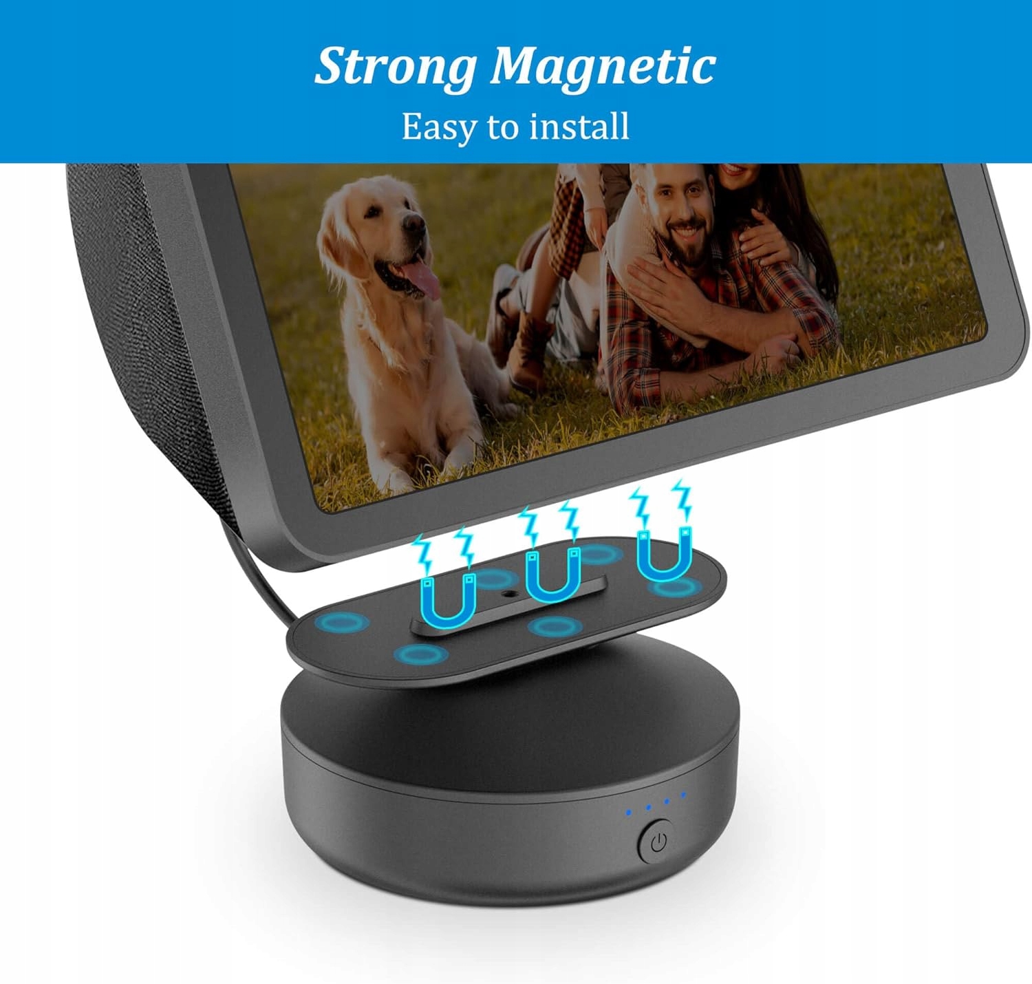 Благодаря прочному магнитному креплению аккумулятор Echo Show 8 позволяет быстро и безопасно прикрепить Echo Show 8 к базе без использования инструментов. Благодаря аккумулятору Echo Show 8 вы можете легко перемещать устройство вверх и вниз, не беспокоясь о том, что оно будет дрейфовать, подпрыгивать или падать.