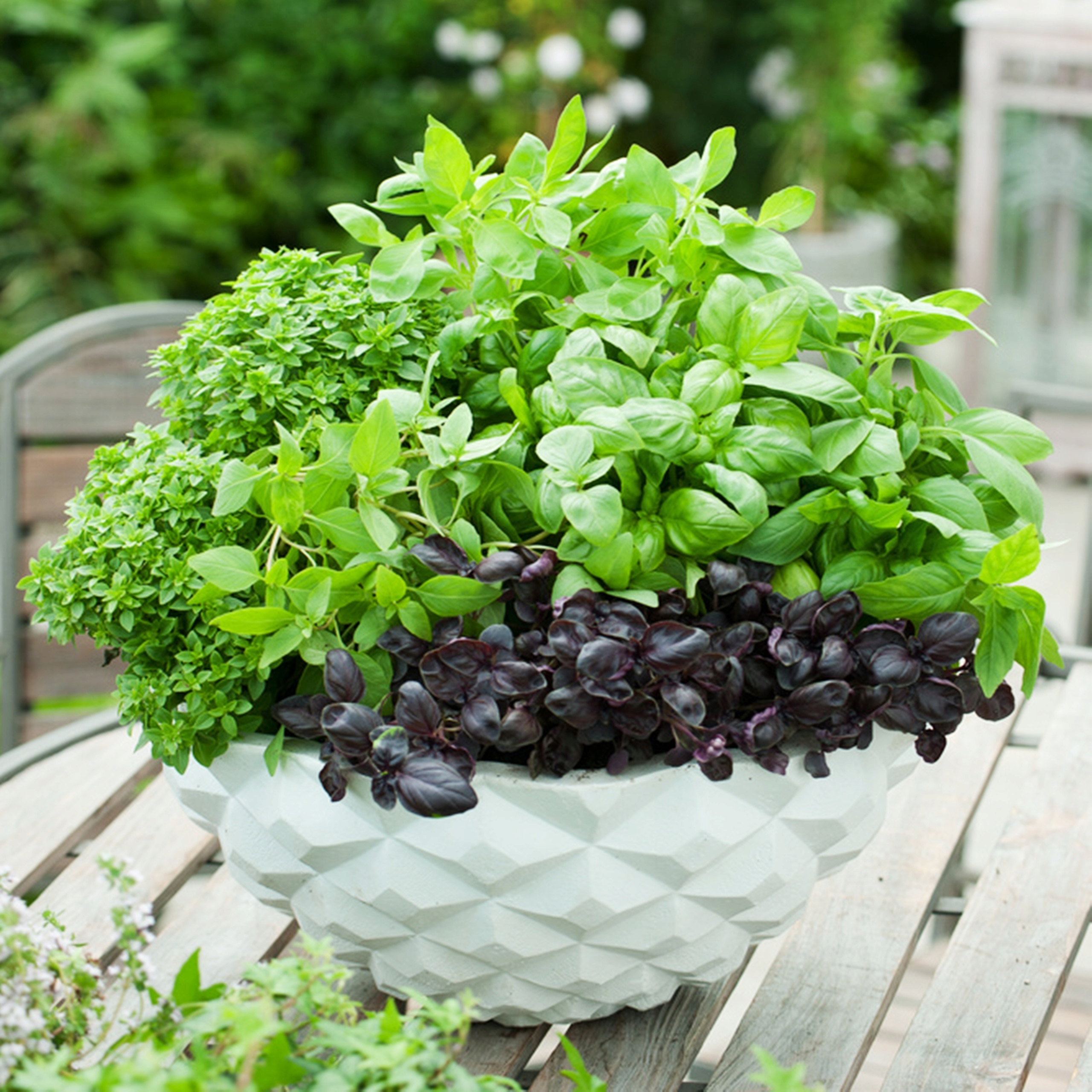 Смесь нескольких ароматных сортов базилика, отличающихся ароматом, формой и цветом листьев. Очень легко сеять, его можно сеять прямо в землю в мае или в горшки, например. на балконе, с марта-апреля. Листья базилика можно добавлять в блюда в сыром или сушеном виде. Они идеально подходят к блюдам итальянской кухни, а также в качестве приправы к мясу, супам и салатам. Предпочитает влажное, солнечное и защищенное место.