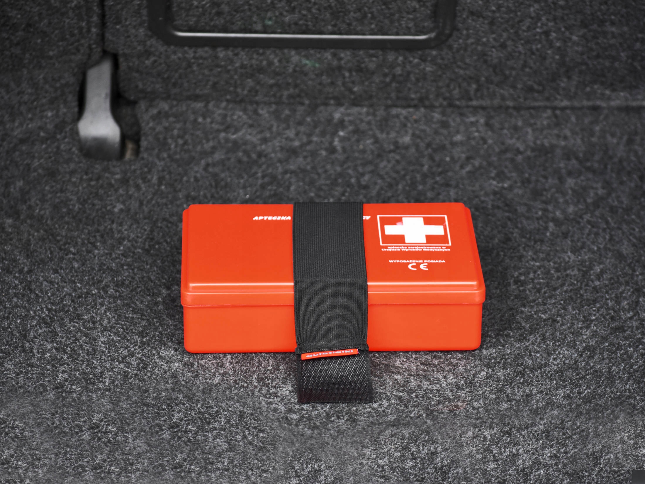 Автомобильная аптечка с основным оборудованием. Изготовлен из пластика яркого цвета. Он имеет компактные размеры и достаточно места, чтобы дополнить его необходимыми перевязочными материалами и лекарствами в соответствии с индивидуальными потребностями. Крепится к обивке автомобиля с помощью практичной ручки из ленты-липучки. Перед покупкой убедитесь, что липучка прилипает к обивке багажника. Если липучка, например, от куртки или сумки, прилипнет к ковру, ручка будет вести себя точно так же.