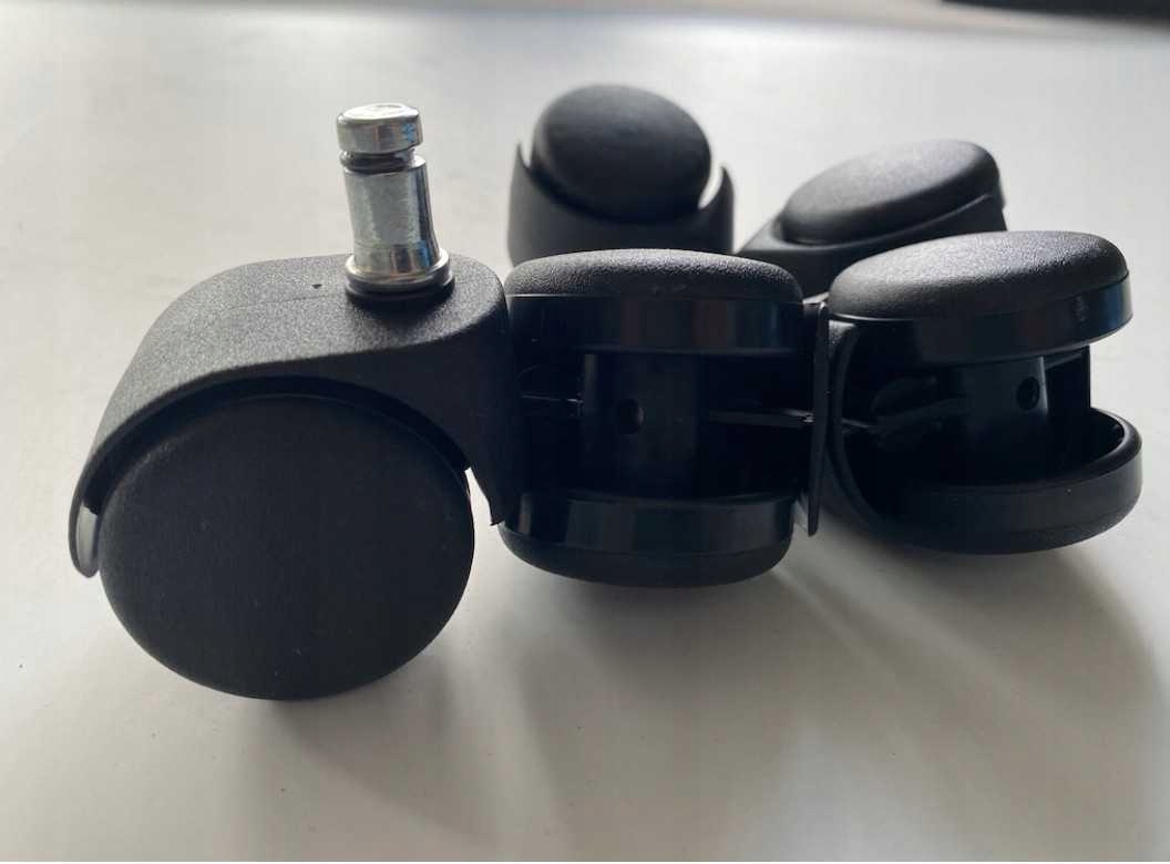Набор включает в себя набор из пяти колес , которые позволяют гладко и тихо, направляя поверхность офиса, дома или студии. Основа соответствует стандартным цилиндрам, используемым в большинстве мест в офисе.