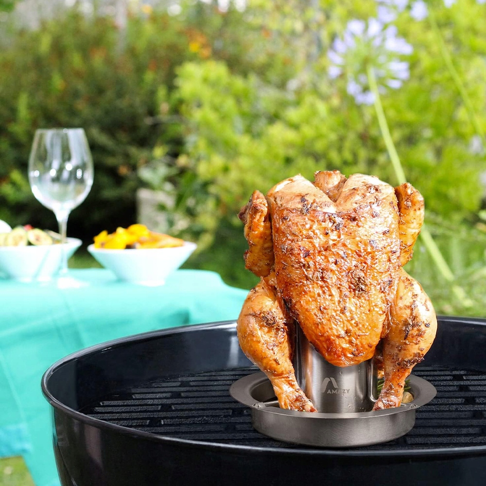 Не просто пейте пиво на вечеринке с барбекю, поджарьте ароматную курицу с пивом с помощью нашей решетки для запекания курицы. Удлиненная и тяжелая решетка для курицы удерживает курицу на месте, не опрокидывая и не падая. Подходит для гриля и духовки!