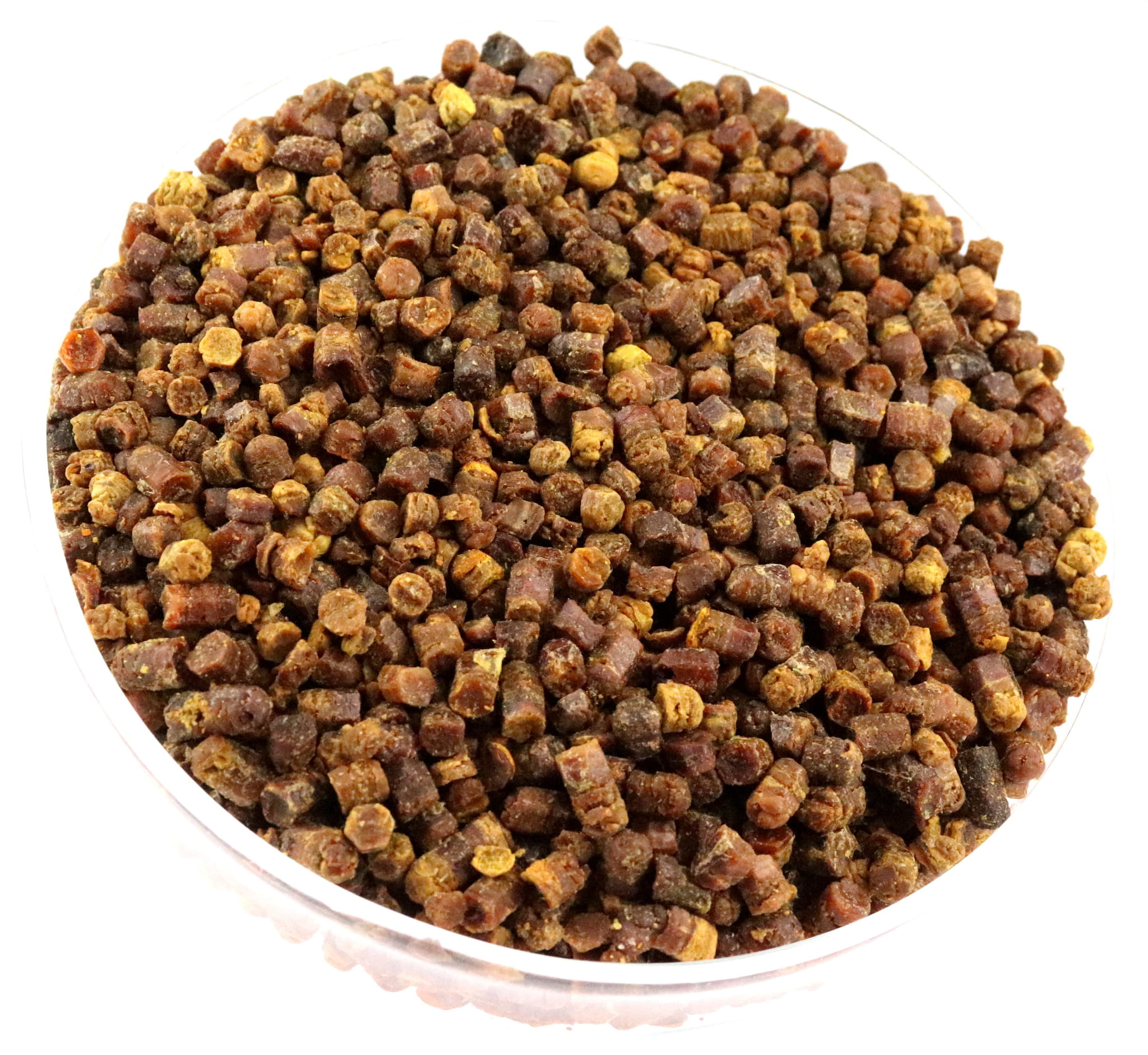 <ул>Пчелиный хлеб представляет собой пыльцу, собранную медоносной пчелой, смешанную с медом и секретом слюнных желез пчелы, отложившуюся в ячейках сот, подвергнутую молочнокислому брожению в анаэробных условиях в среде пчелиного сота. пчелиное гнездо. Это прежде всего корм для пчел осенью и зимой, а также ранней весной. Ценность перги в пищевых и профилактических целях значительно выше, чем у пыльцы, благодаря более богатому составу и более легкой усвояемости - она содержит витамины, аминокислоты, микро- и макроэлементы.