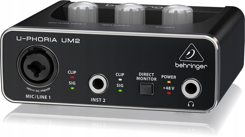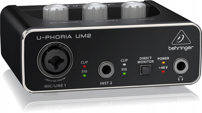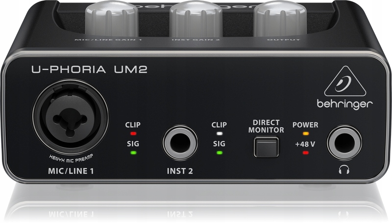 BEHRINGER U-PHORIA UM2 — аудиоинтерфейс USB 2x2, предназначенный для записи инструментов, вокала, закадрового голоса и использования микрофонов.