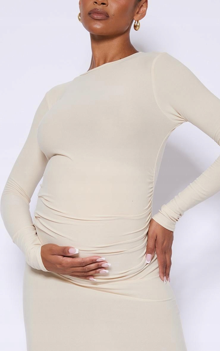 БЕЖЕВОЕ ПЛАТЬЕ МАКСИ ДЛЯ МАТЕРИАЛОВ, ПРИГЛАЖЕННОЕ, РЕБЛИЧНОЕ PRETTYLITTLETHING 38