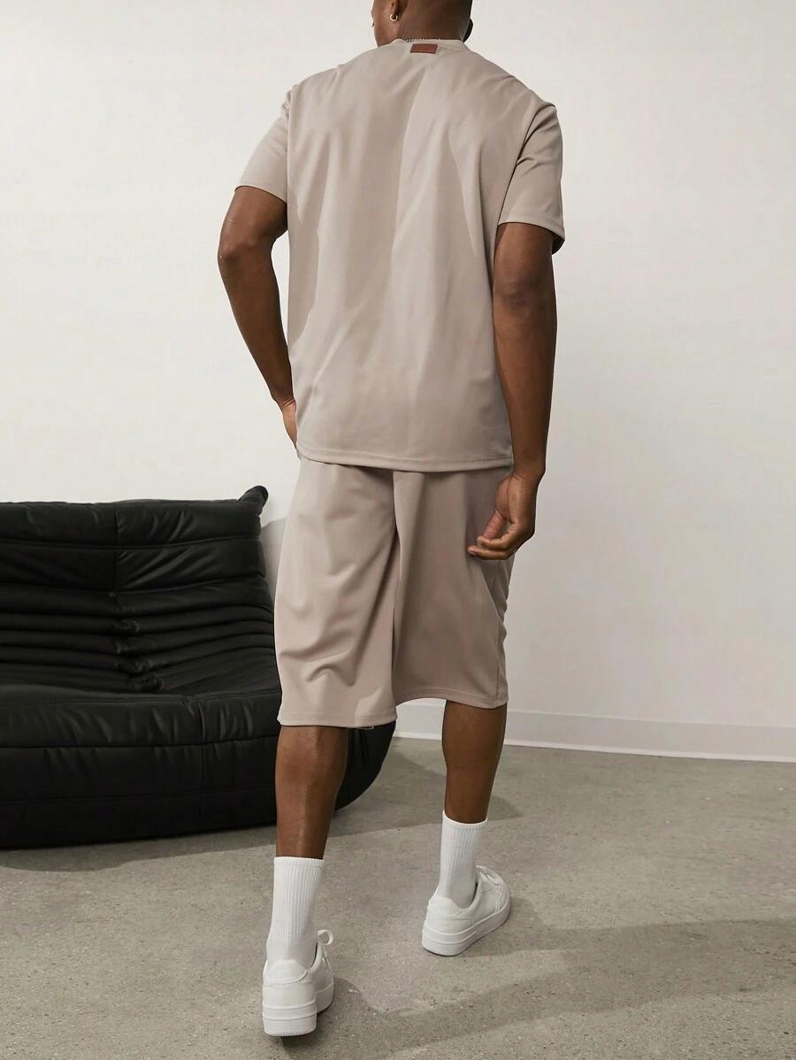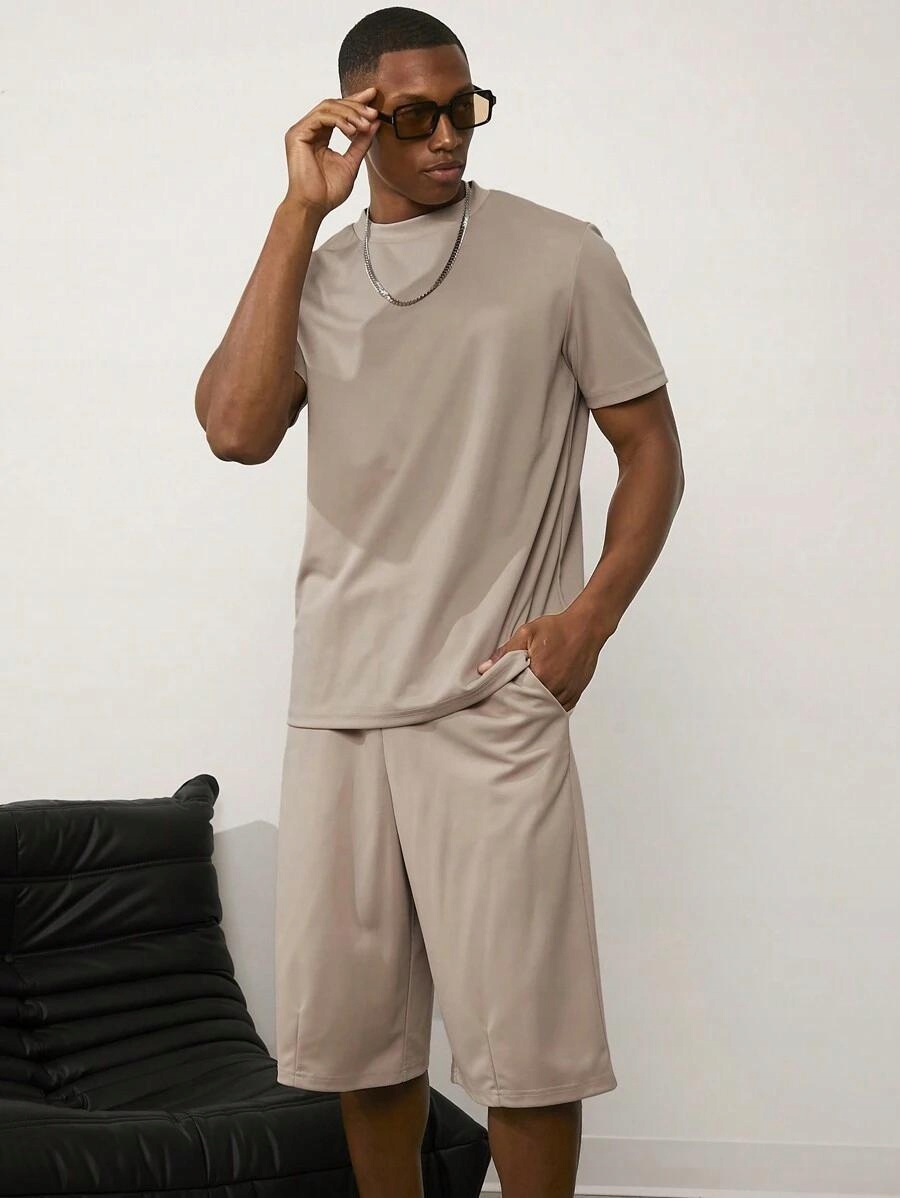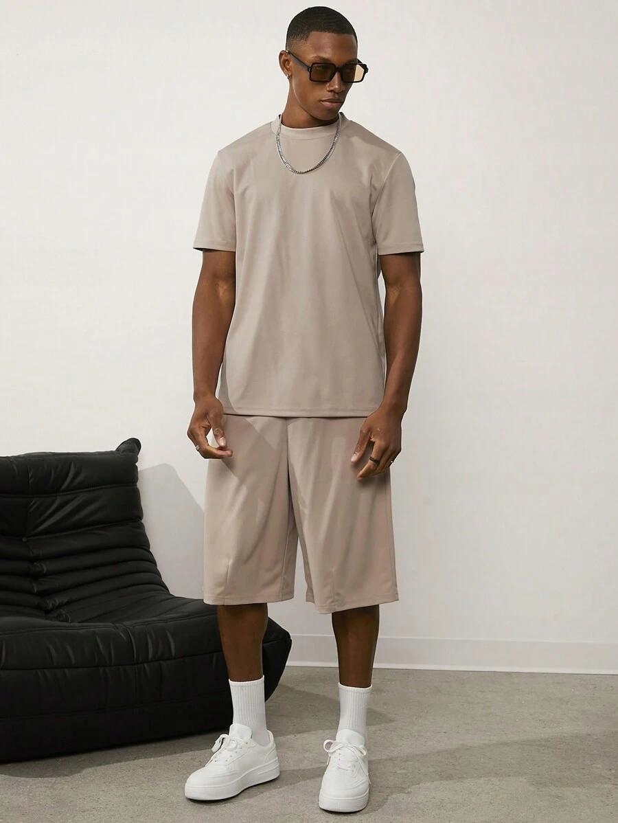 БЕЖЕВЫЙ КОМПЛЕКТ ИЗ ДВУХ ПРЕДМЕТОВ, ПРЯМАЯ ФУТБОЛКА, ШОРТЫ FOREVER 21 Л