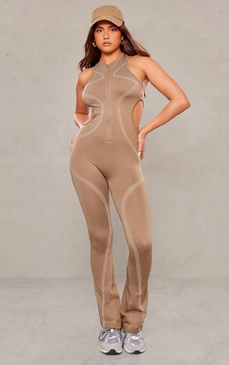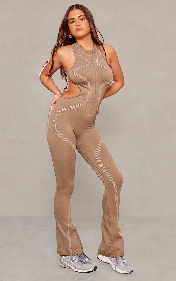 БЕЖЕВАЯ КУРТКА ПРИТЯЖЕННЫЙ УЗОР ПОЛОСКИ С ВЫРЕЗАМИ PRETTYLITTLETHING S