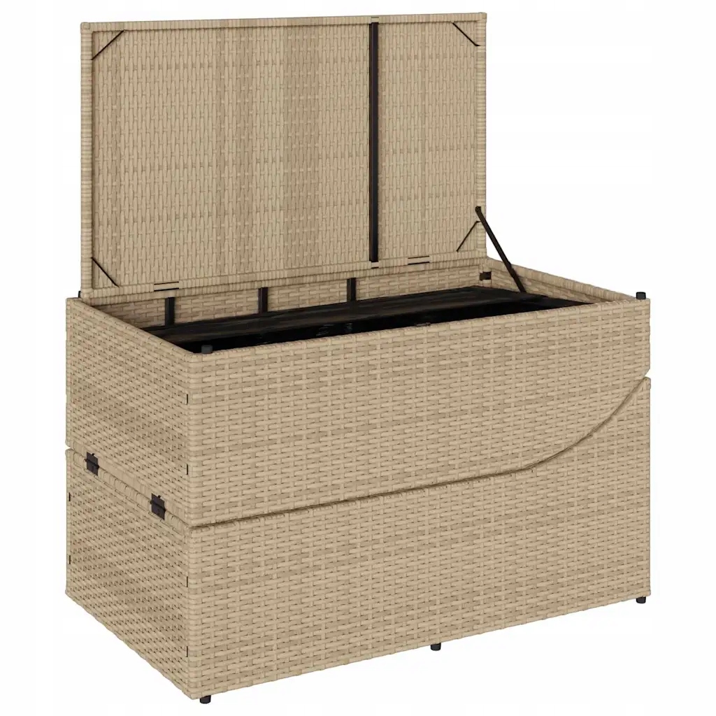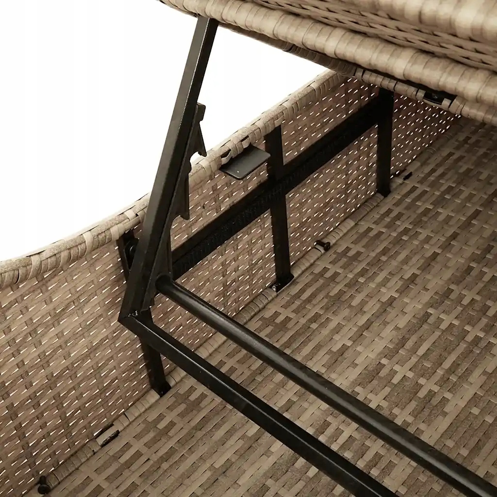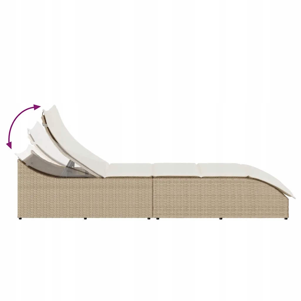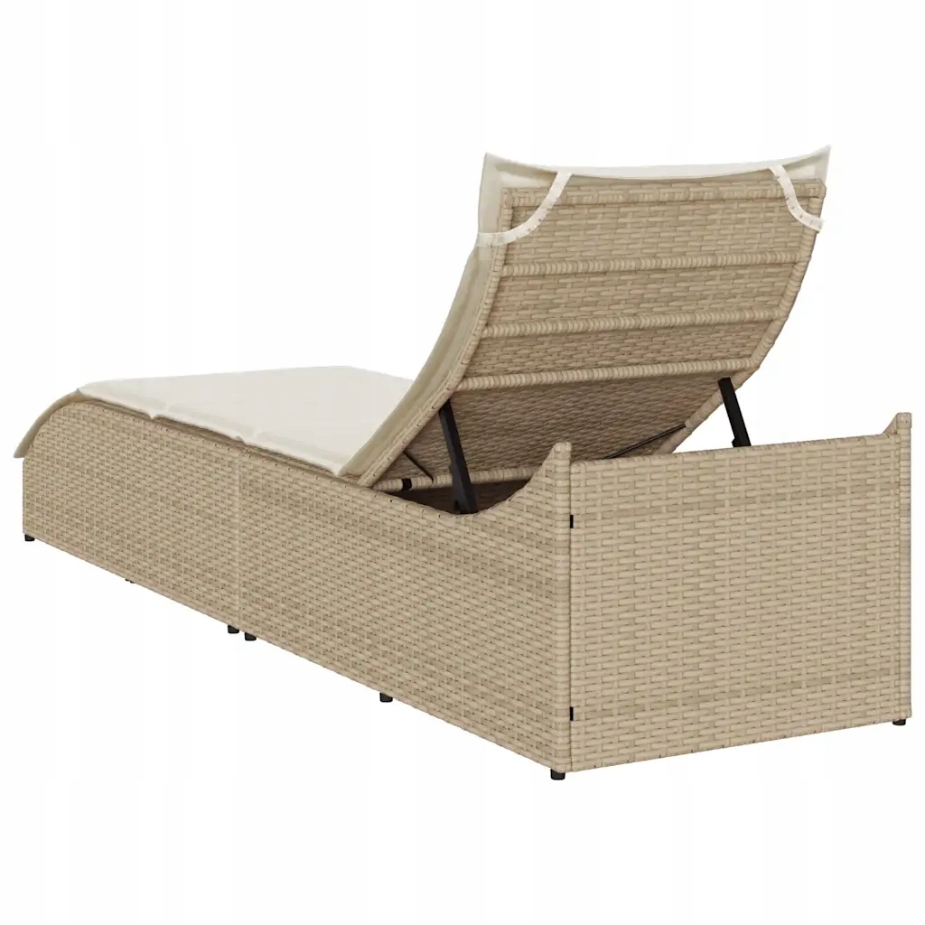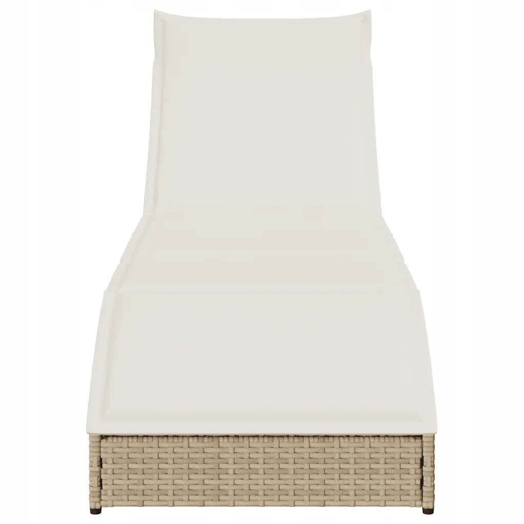 Бежевый складной шезлонг с подушкой, полиэтиленовый ротанг, 59 x 200 x 79 см