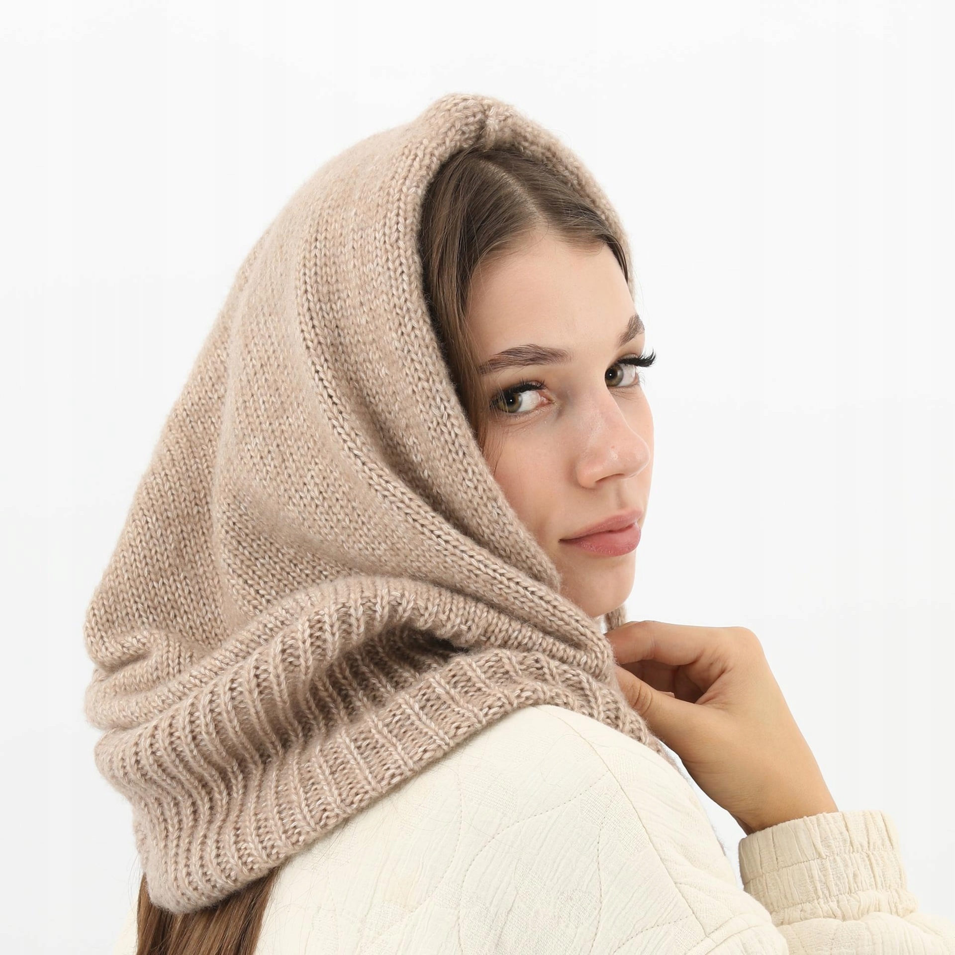 Бежевый шарф с капюшоном из шерсти мериноса RELAXATION, ОДИН РАЗМЕР