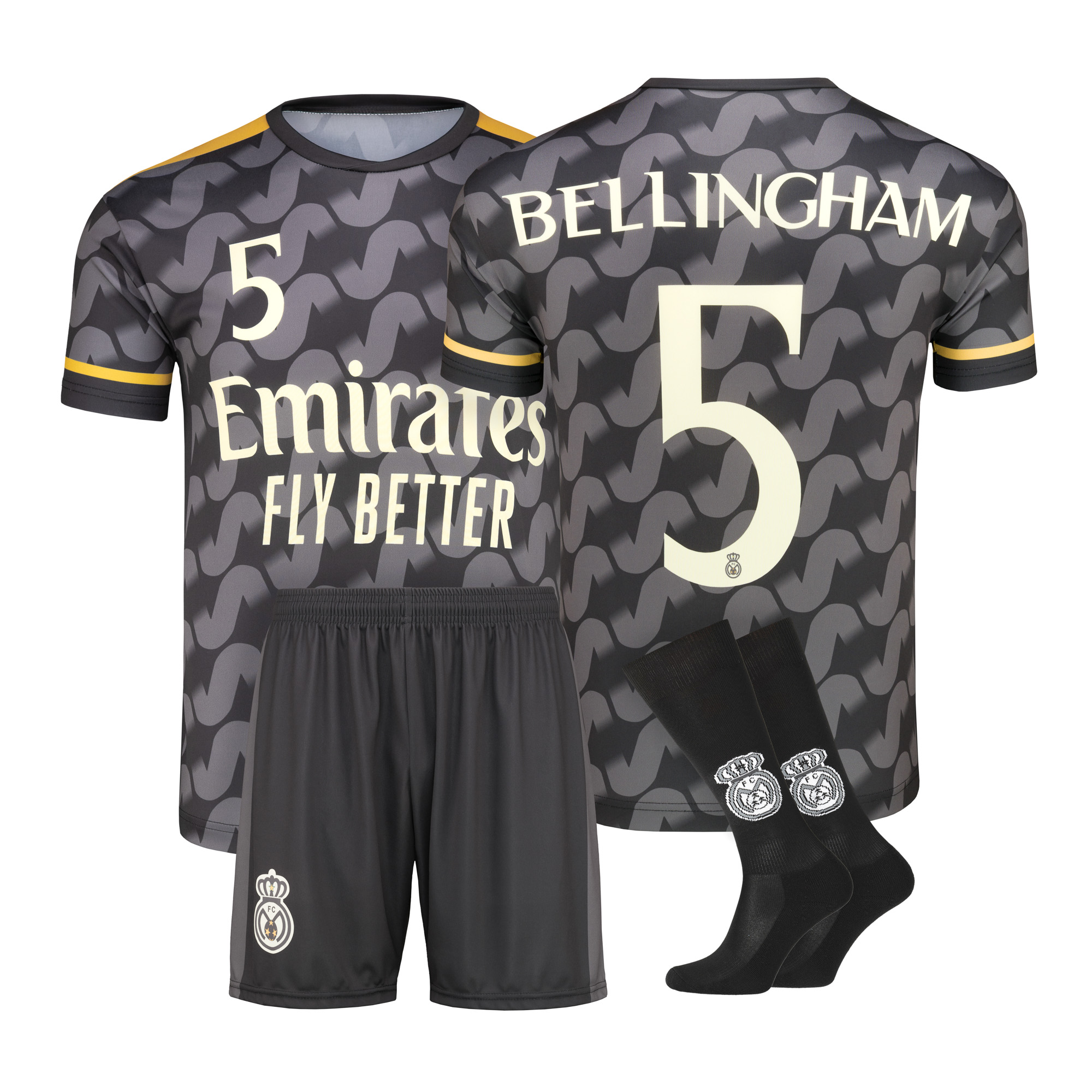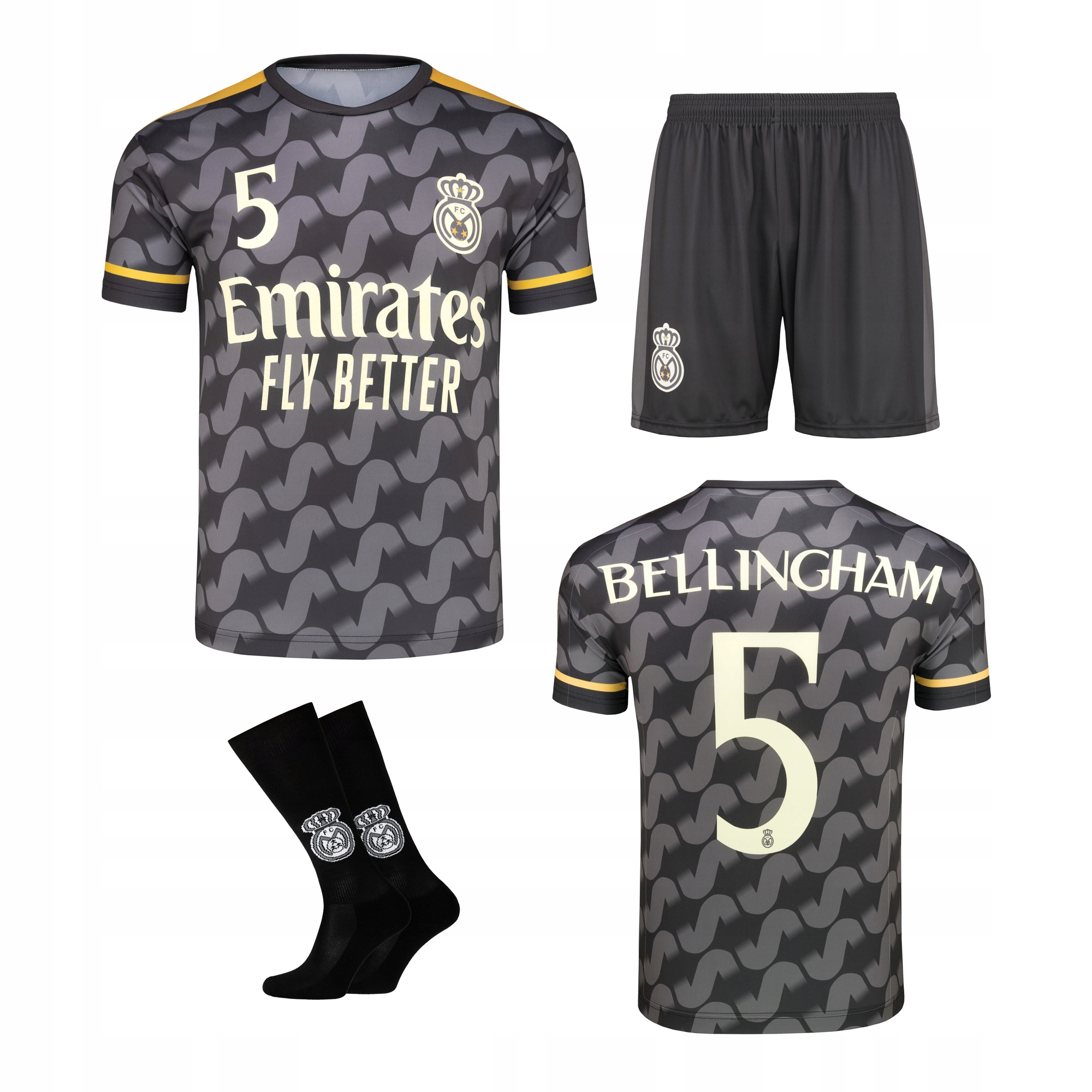 Футбольный сет, вдохновленный командой Madrid с надписью bellingham, номер 5. , сделанный из прочного и хорошего качества. Материал Quick -drying , дышащий и приятный на Touch .
