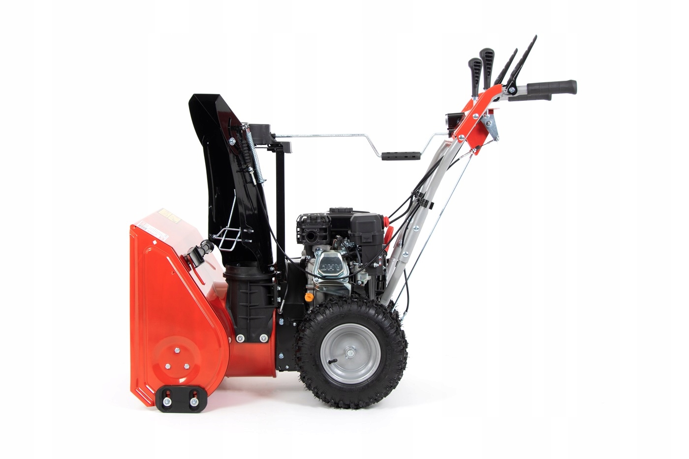 Представленный снегоочиститель имеет 2 больших, прорезиненных ведущих колеса, что облегчает управление машиной в любых условиях - Сами убедитесь в необычайном комфорте работы с помощью привода с 4 передними передачами. Возможность работы задним ходом облегчает извлечение устройства в случае зарыва в нору или застревания.