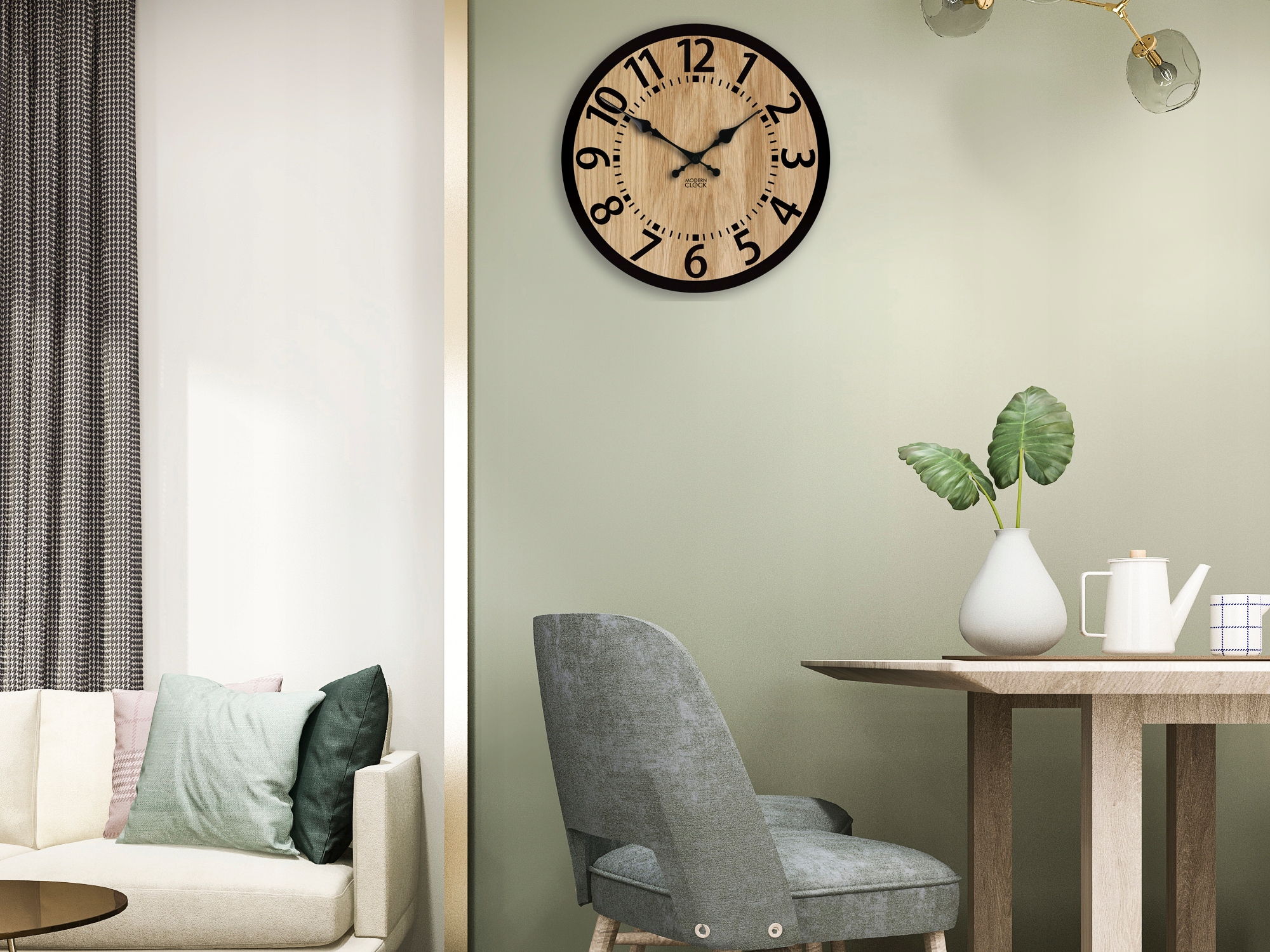 ДЕРЕВЯННЫЕ НАСТЕННЫЕ ЧАСЫ ИЗ ДУБА - БЕРЛИН - Диаметр 33,5 см