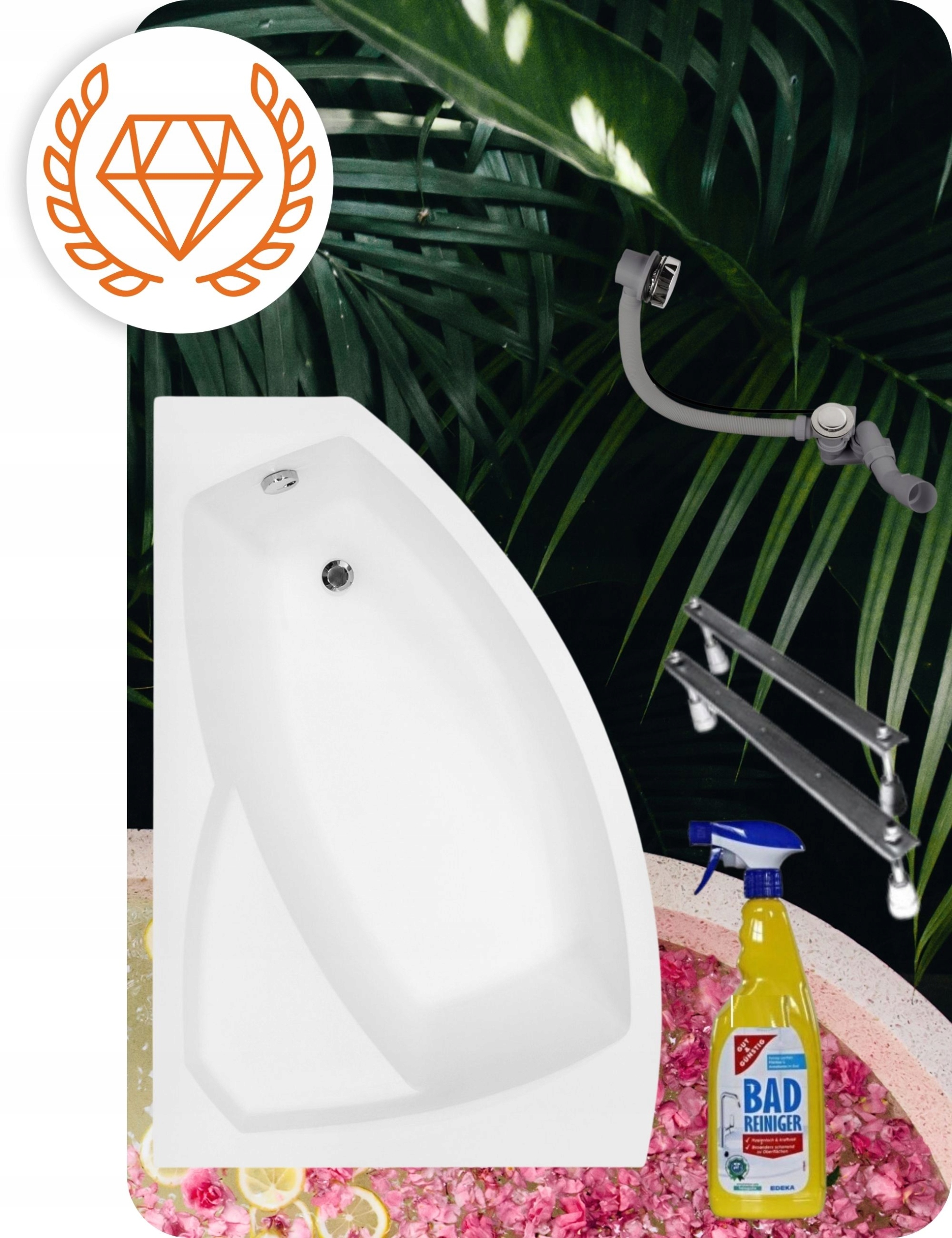 BESCO RIMA Кутова акрилова ванна 130х85см з ЛІВИМ корпусом Сифон Автоматична