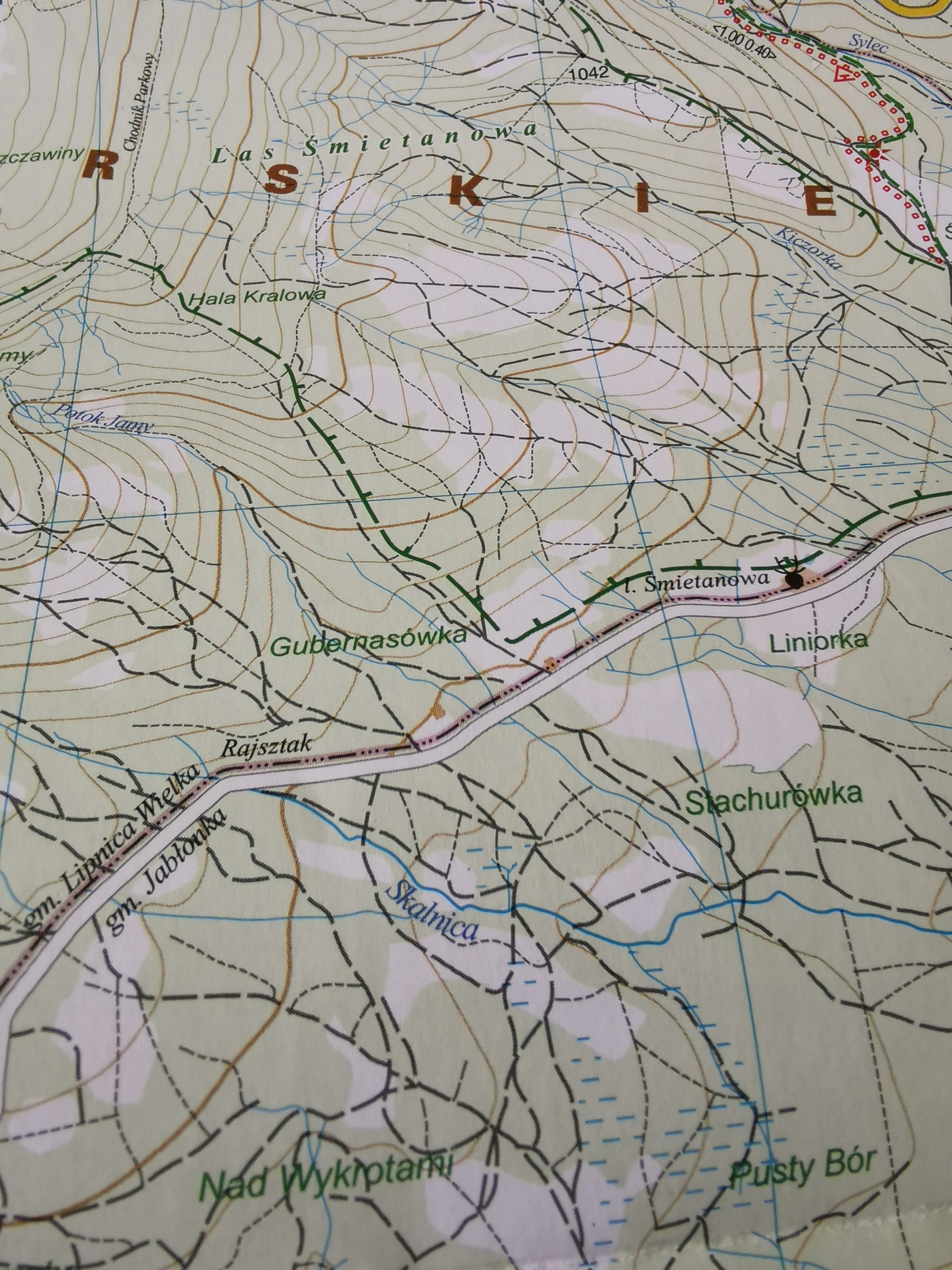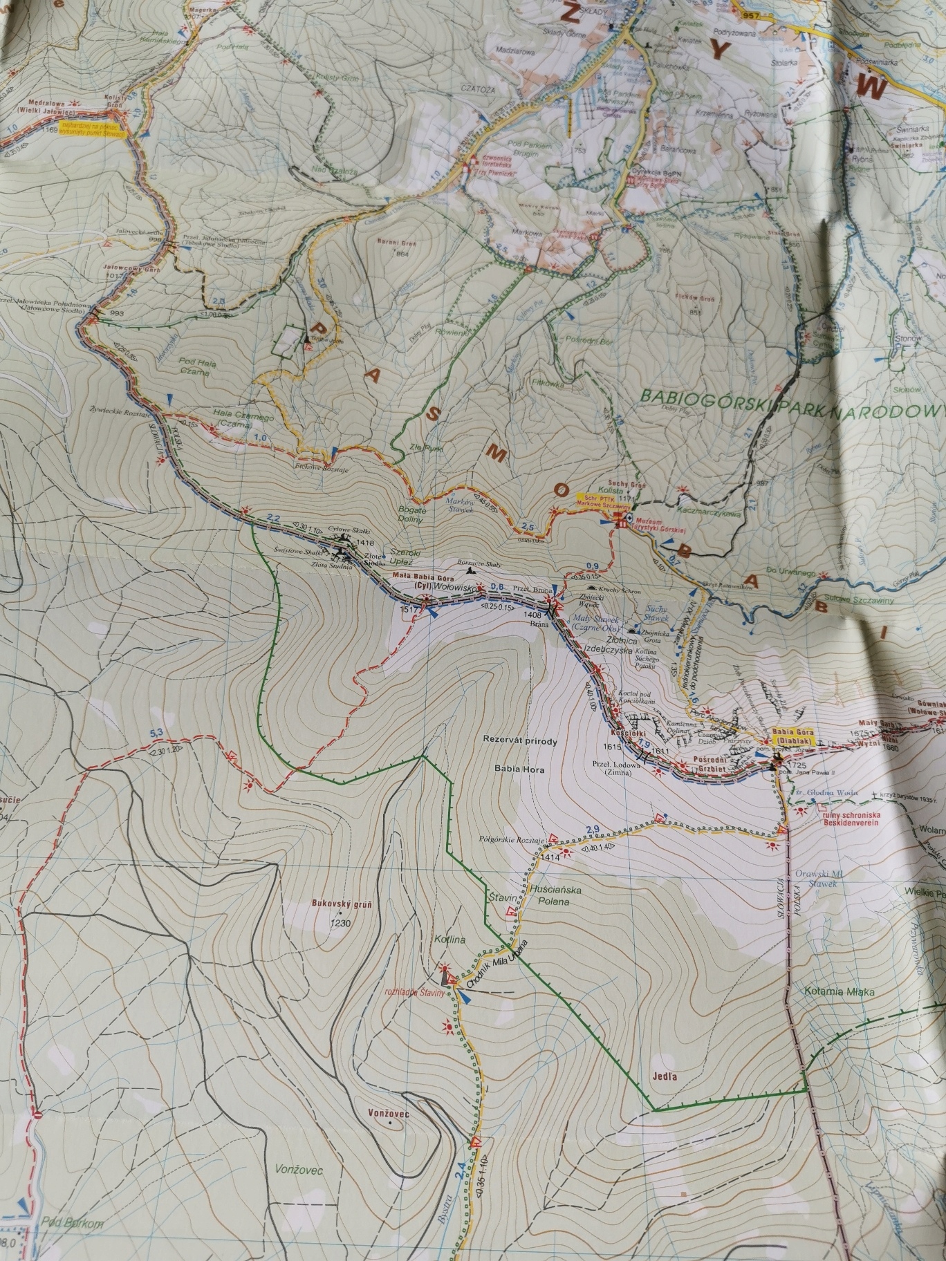 Карта охватывает восточную часть Живецкого хребта Бескид с массивом Бабья Гора и городами Завоя, Йорданов, Шпитковице, Зубжица-Гурна, Кошарава и польско-словацкой границей. На карте вы найдете все туристические достопримечательности, туристическую и спортивную инфраструктуру. Дополнительно были выделены наиболее интересные места. Содержит текущий маршрут пешеходных и велосипедных маршрутов, а также километраж и приблизительное время ходьбы.