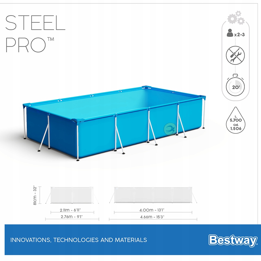 Уникальный садовый бассейн, который обеспечивает охлаждение в жаркий летний день. Офис настоящий бассейн и восхищайте своих друзей этим уникальным бассейном! Bestway Steel Pro Max Pool of Bestway, размер 400 см х 211 см х 81 см и емкость 5700 л .