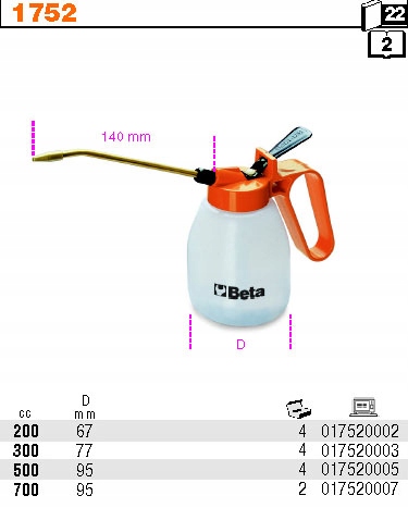 Пластиковое давление масла, с металлической жесткой трубкой, модель 1752, 200 мл - итальянская компания бета