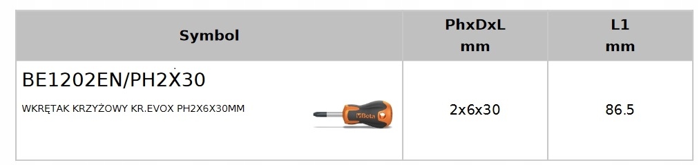 КОРОТКАЯ КРЕСТОВАЯ ОТВЕРТКА BETA EVOX PH2X6X30 MM