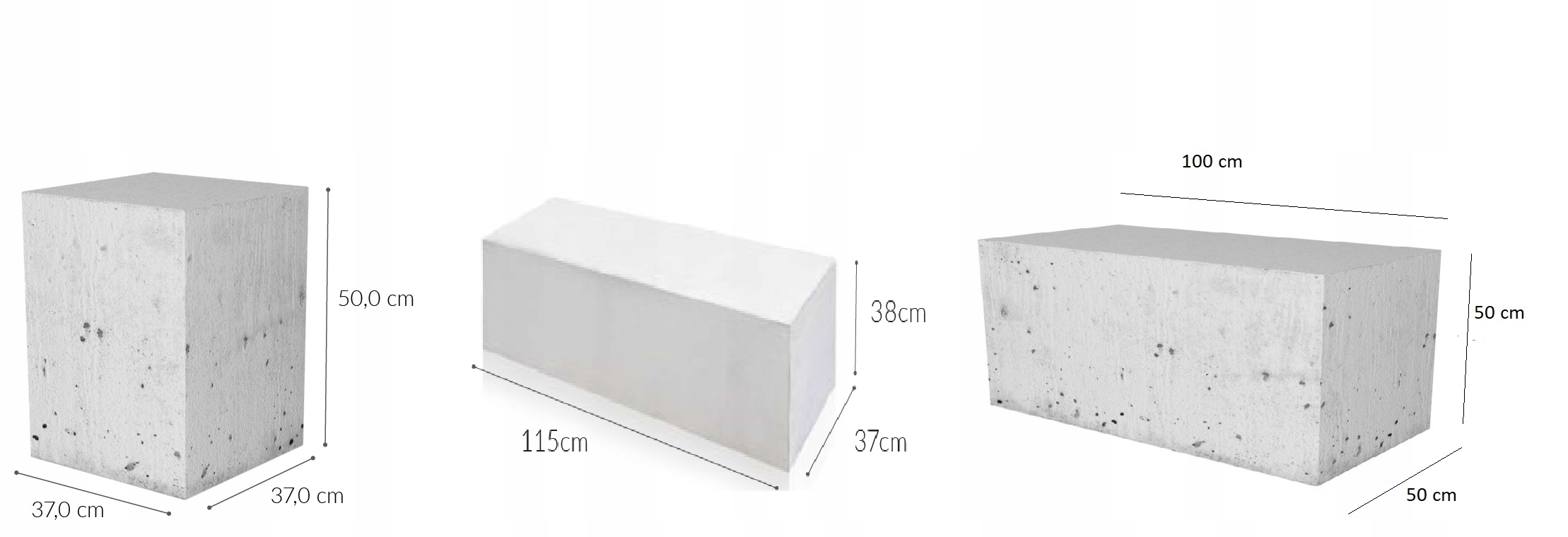 - Бетонное основание с размерами. 50,0х37,0х37,0 см.