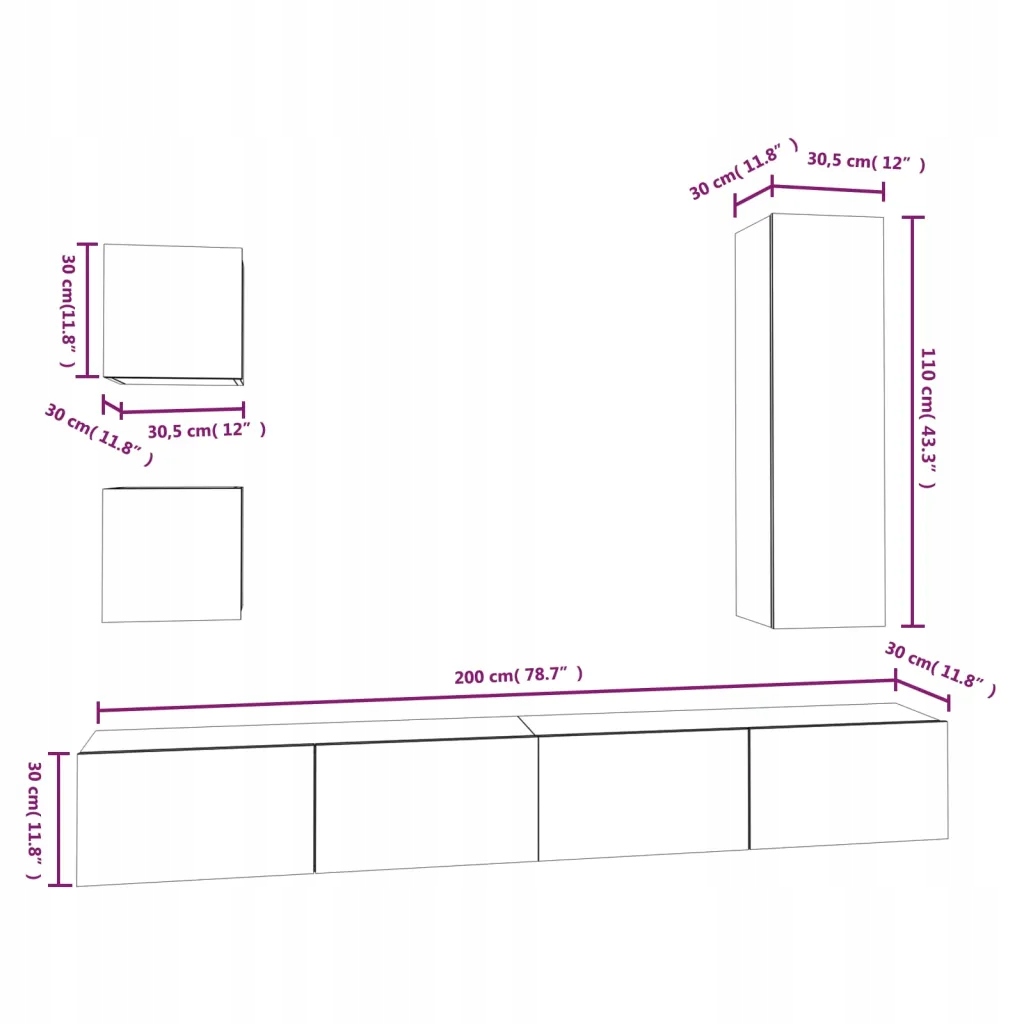 - 2 тумбы под телевизор: 30,5 x 30 x 30 см (Д x Ш x В)