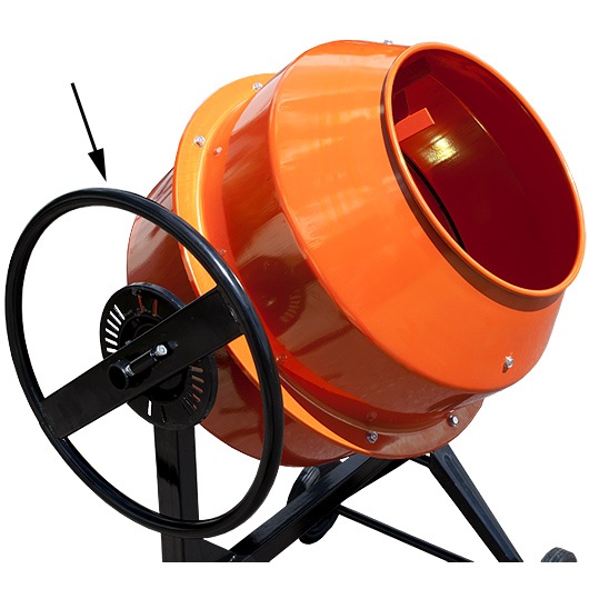 Бетономешалки оснащены колесом, регулирующим наклон барабана бетономешалки, что существенно упрощает пользование устройством.
