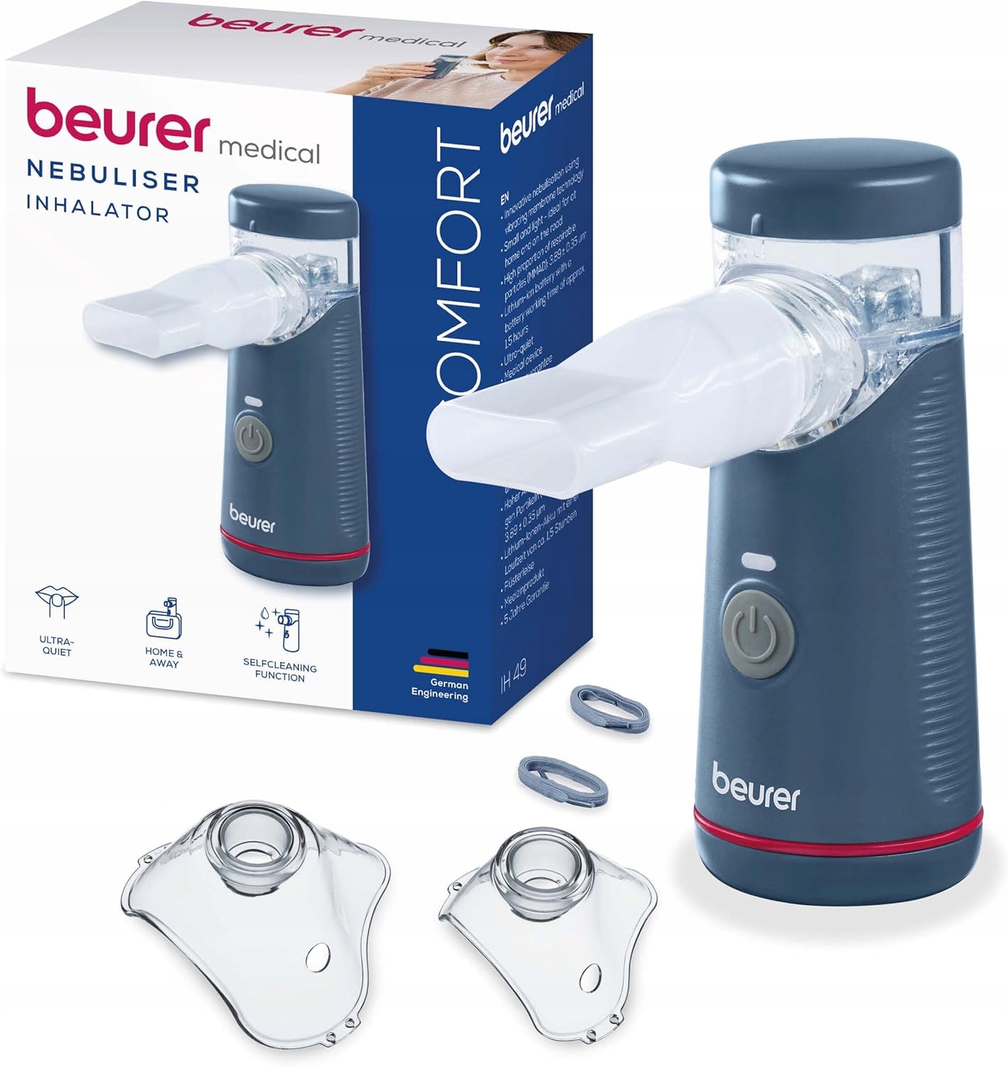 Ингалятор Beurer IH 49 — современный медицинский прибор, обеспечивающий быстрое и эффективное лечение заболеваний органов дыхания как дома, так и в путешествии. Благодаря компактному дизайну и питанию от аккумулятора он является отличным выбором для взрослых и детей, страдающих простудой, астмой или другими респираторными заболеваниями.