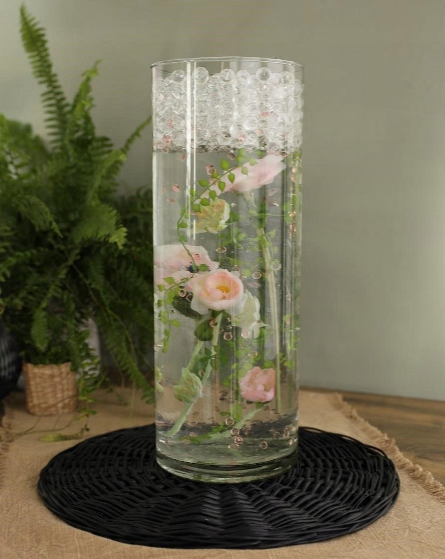 - насыпьте сухие гидрогелевые шарики в контейнер.
