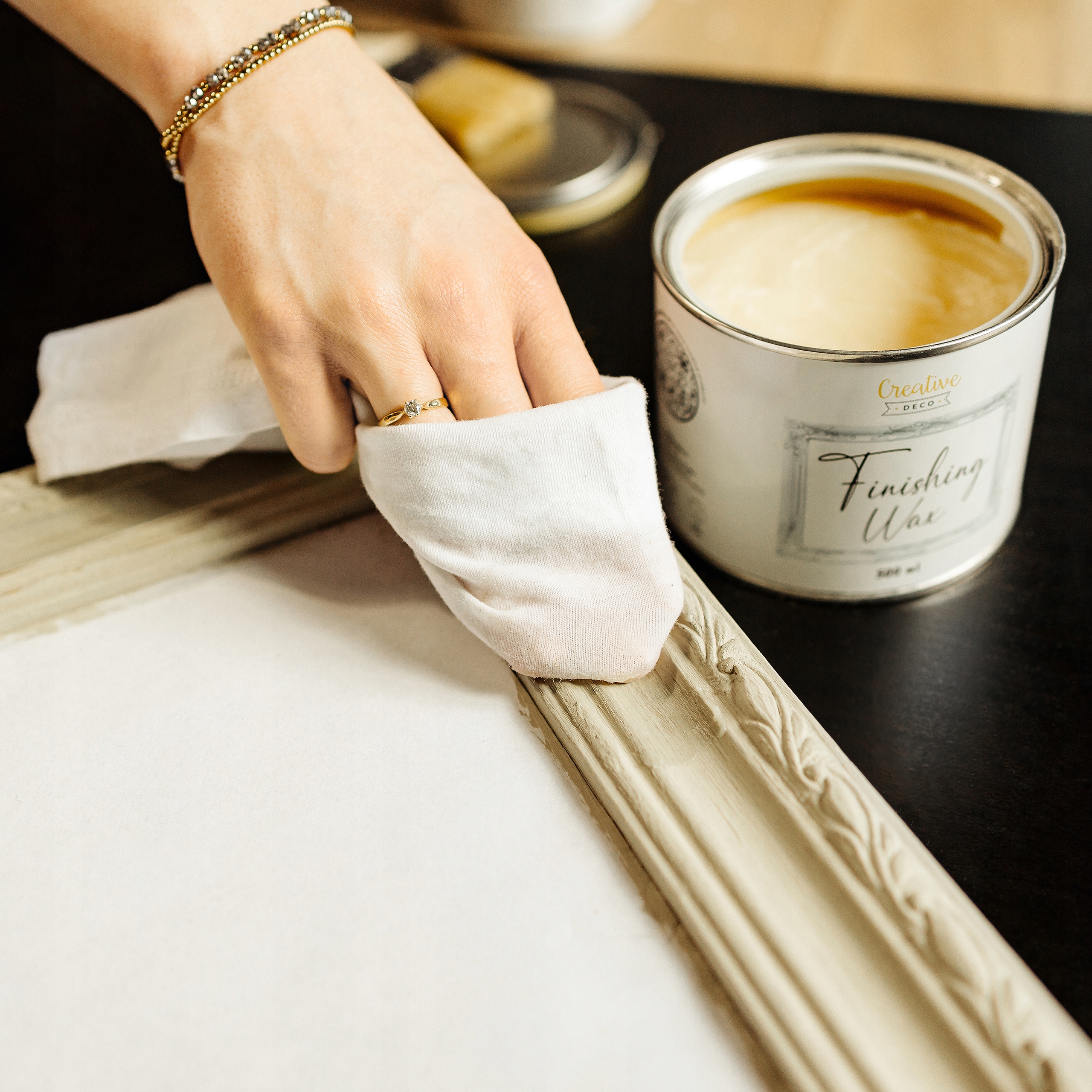 ЗАЩИЩАЕТ НА ГОДЫ - Воск содержит чистый пчелиный воск и карнаубский воск, благодаря которым древесина питается и содержится в хорошем состоянии. Если вы хотите защитить любой тип поверхности от воды, царапин и других повреждений, независимо от того, окрашена ли она, декорирована или нет, используйте финишный воск Creative Deco. Прозрачный слой защитит вашу мебель на долгие годы.
