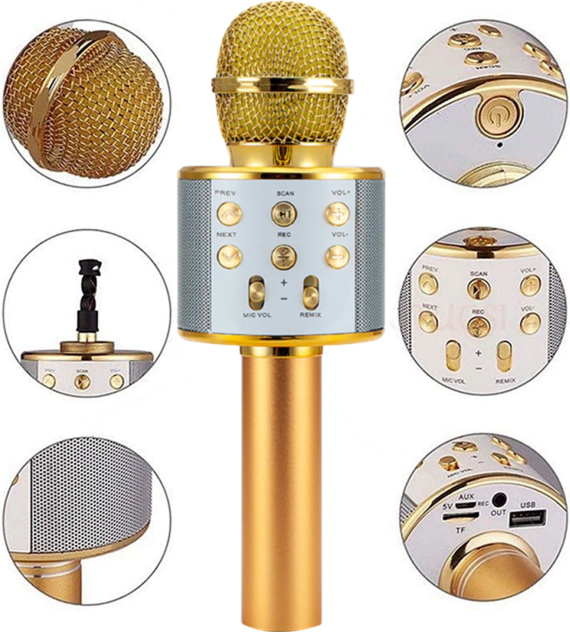 БЕСПРОВОДНОЙ BLUETOOTH МИКРОФОН КАРАОКЕ-ДИНАМИК С FM-РАДИО, КАРТРИДЕРОМ MICROSD, AUX, USB