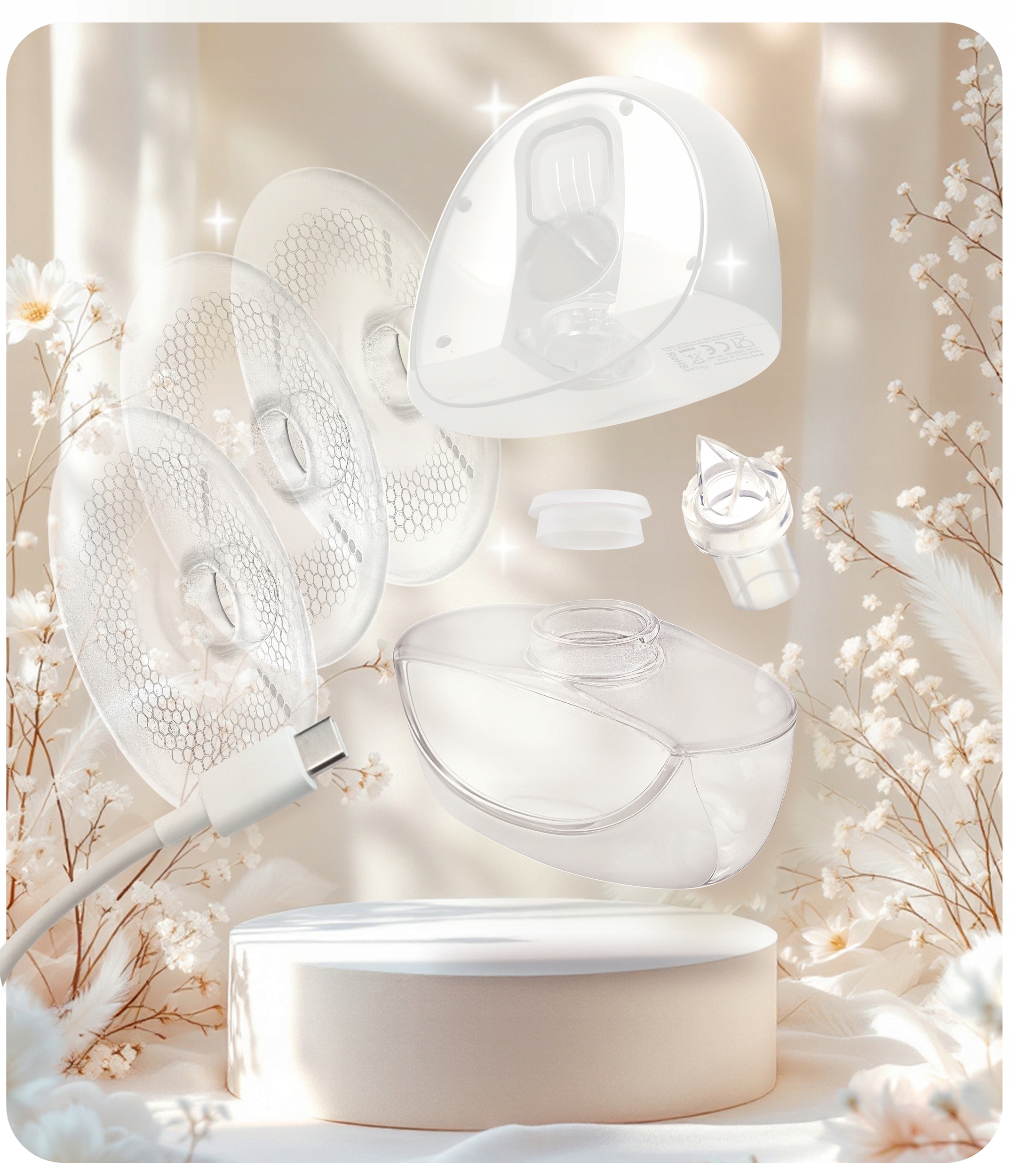 Насос грудиного насоса имеет беспроводную связь. Он оснащен литийной батареей, которая после зарядки позволяет 4 часа использования и заряжается с использованием включенного зарядного устройства USB-C