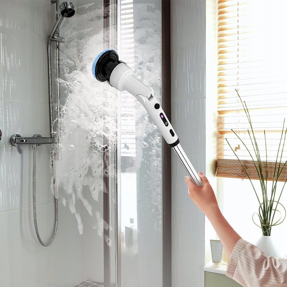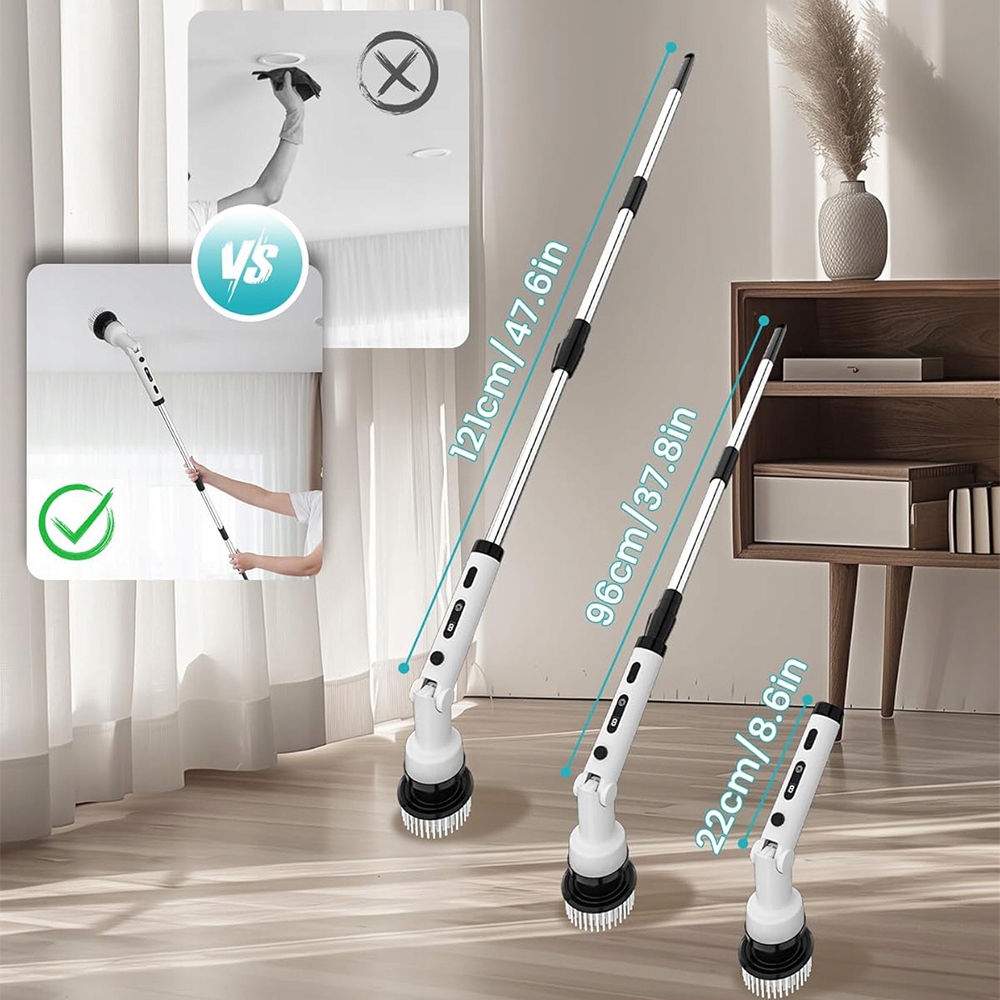 🫧 Благодаря электрической чистящей щетке, вы можете легко очистить любой уголок вашего дома, не изгибаясь или на колени. Облегчает очистку высоких потолков, глубоких ванн и жестких плиток.
