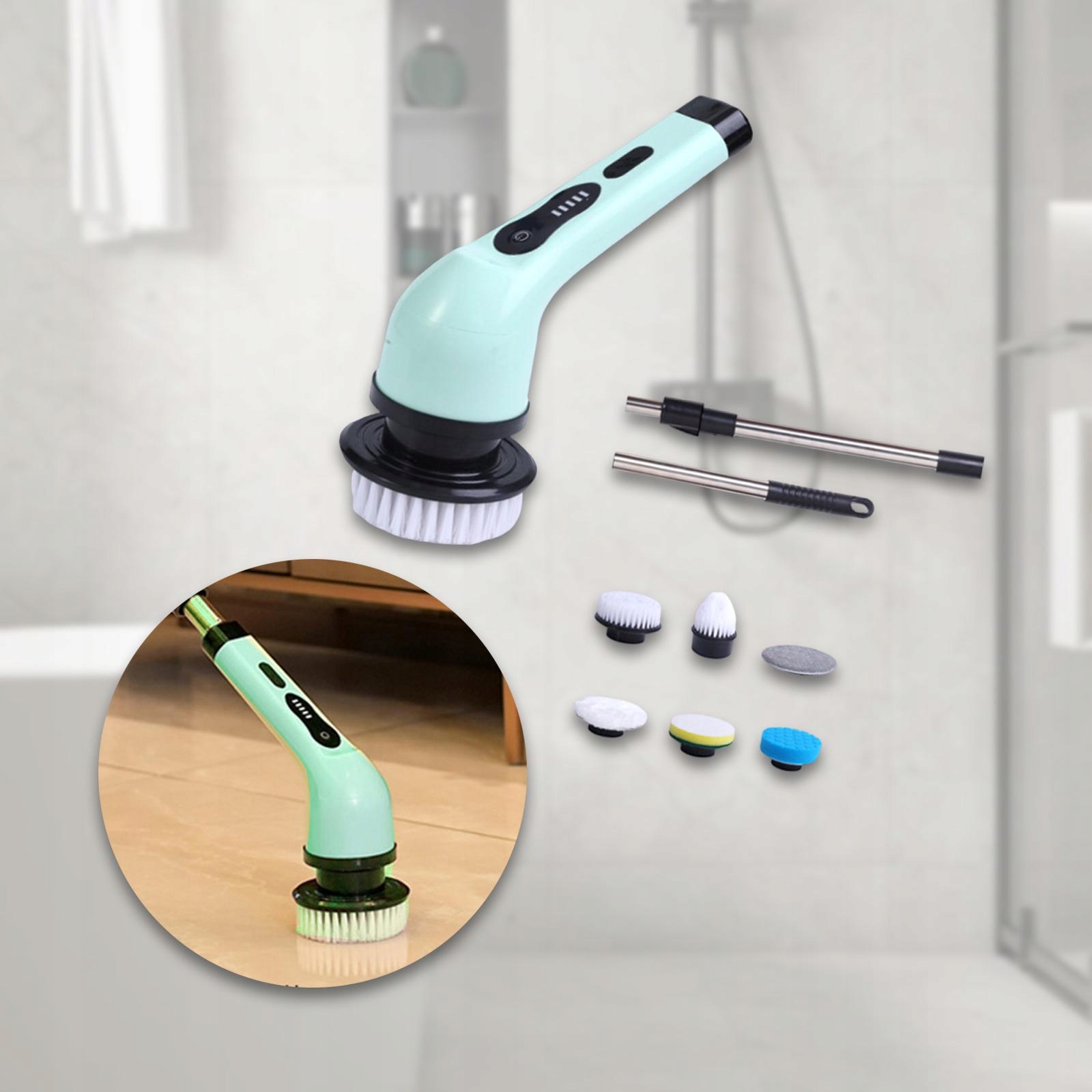 Беспроводная чистящая щетка с ручкой удлинителя, батарея, электрическим, зеленым