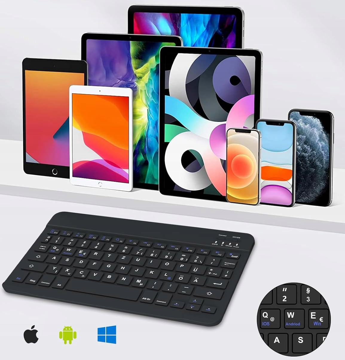 БЕЗДРОТОВА КЛАВІАТУРА BLUETOOTH, СУМІСНА З WINDOWS / ANDROID / IOS