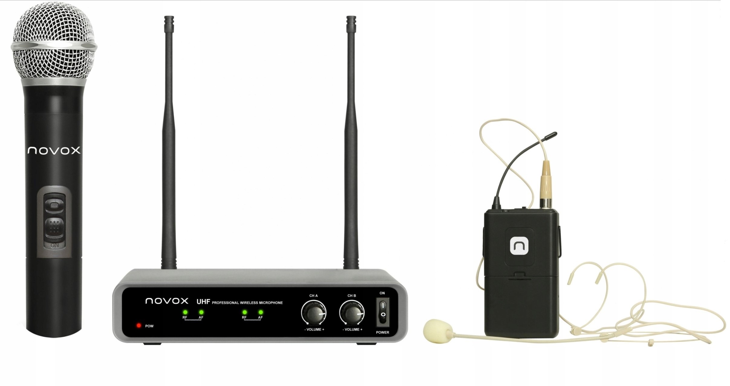 Комплект NOVOX Free HB2 идеально подходит для мероприятий на открытом воздухе, встреч или публичных презентаций благодаря прочной конструкции, которая не подведет даже в сложных условиях. Большой микрофон, входящий в комплект, удобно держать в руке, а также его можно закрепить на подставке или держателе. Второй микрофон идеально крепится на голове, а прилагаемый зажим позволяет закрепить передатчик на одежде – например, на одежде. под рубашкой или на поясе брюк.