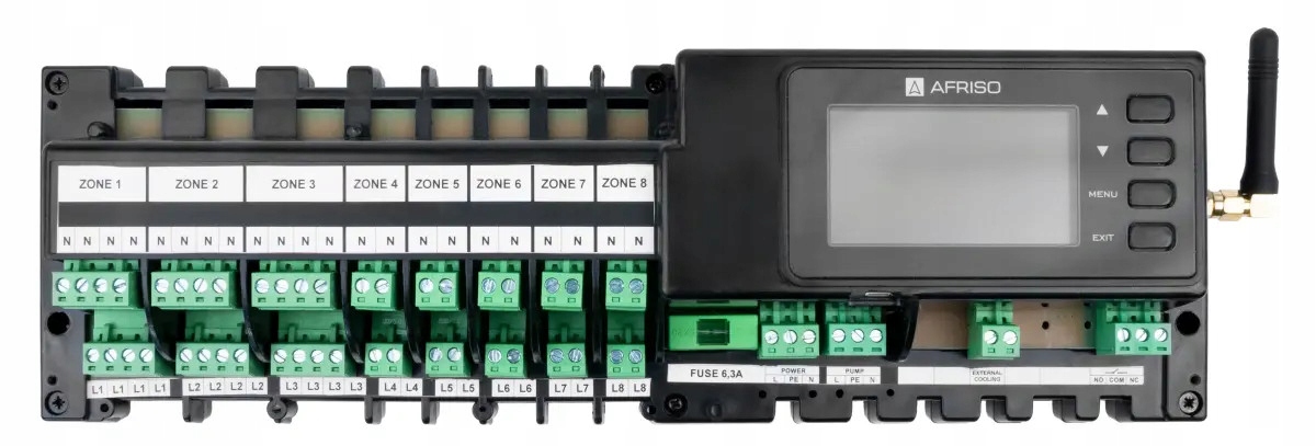 Она обеспечивает взаимодействие с беспроводными термостатами AFRISO и другими системными устройствами, обеспечивая точное и экономичное управление. контуров теплого пола.