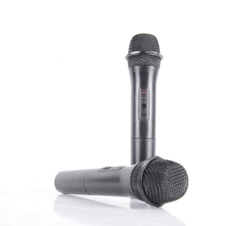 состоит из 2 портативных ручных микрофонов, действующих как передатчики и приемники.