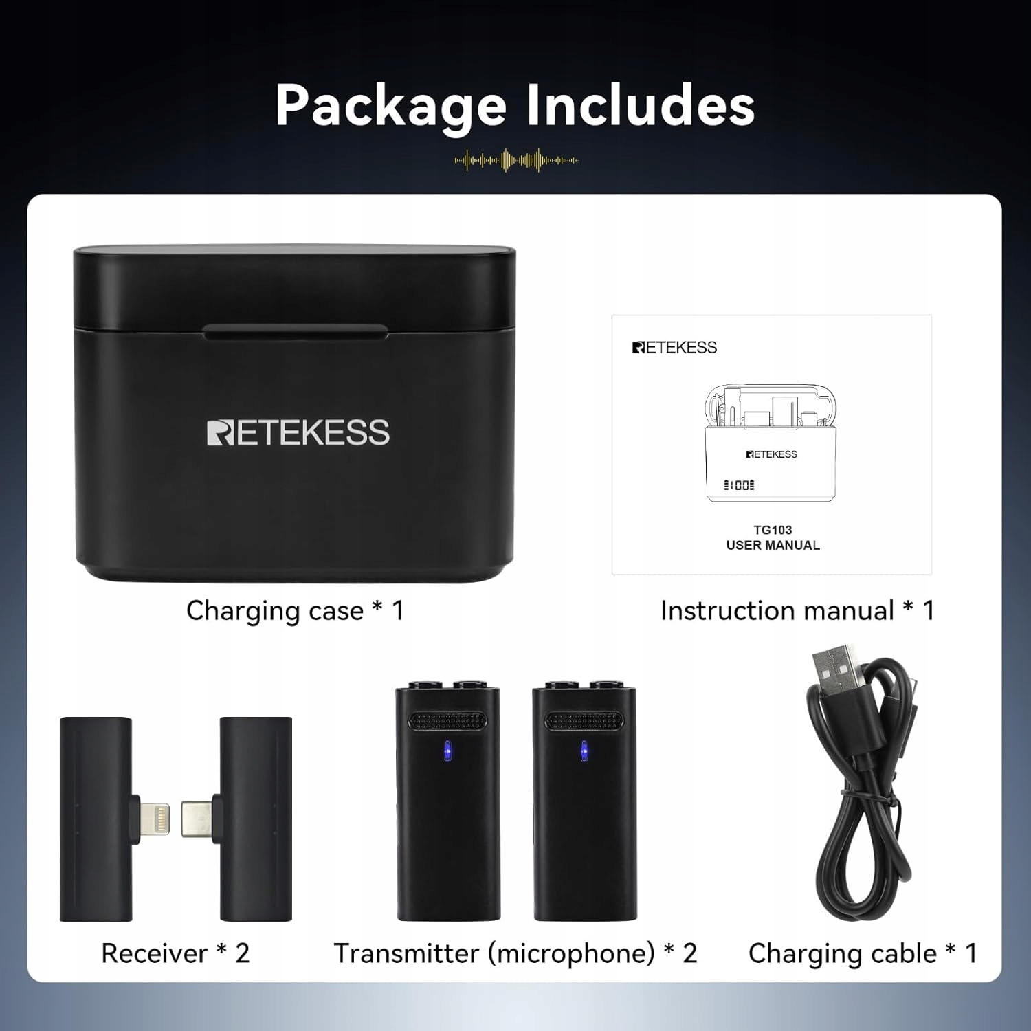RETEKESS TG103 БЕСПРОВОДНЫЕ ЗАЖИМНЫЕ МИКРОФОНЫ, РЕГУЛИРУЕМЫЕ