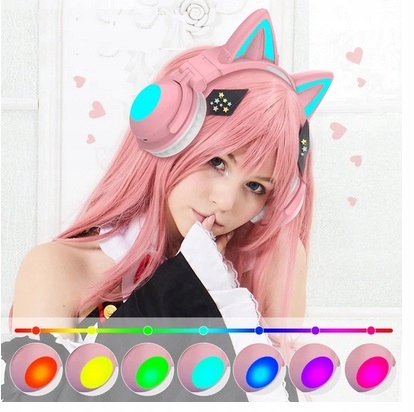 Беспроводные наушники в форме ушей кошек b> - с микрофоном, 7 цветов RGB 7 Light, идеально подходит для игроков, для слушания музыки или науки.