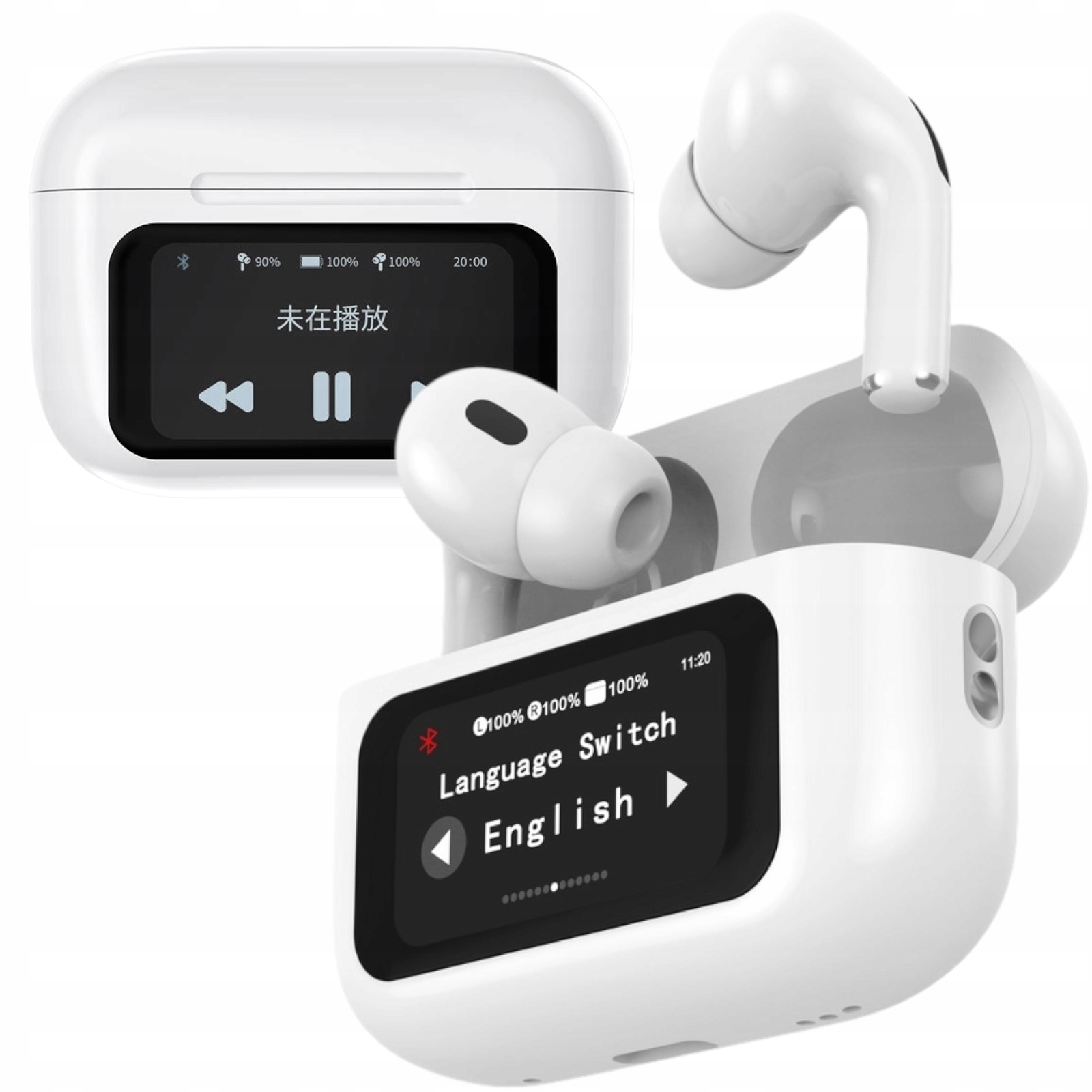 БЕСПРОВОДНЫЕ НАУШНИКИ-ВКЛАДЫШИ с BLUETOOTH, БЕЛЫЕ, СВЕТОДИОДНЫЙ ДИСПЛЕЙ